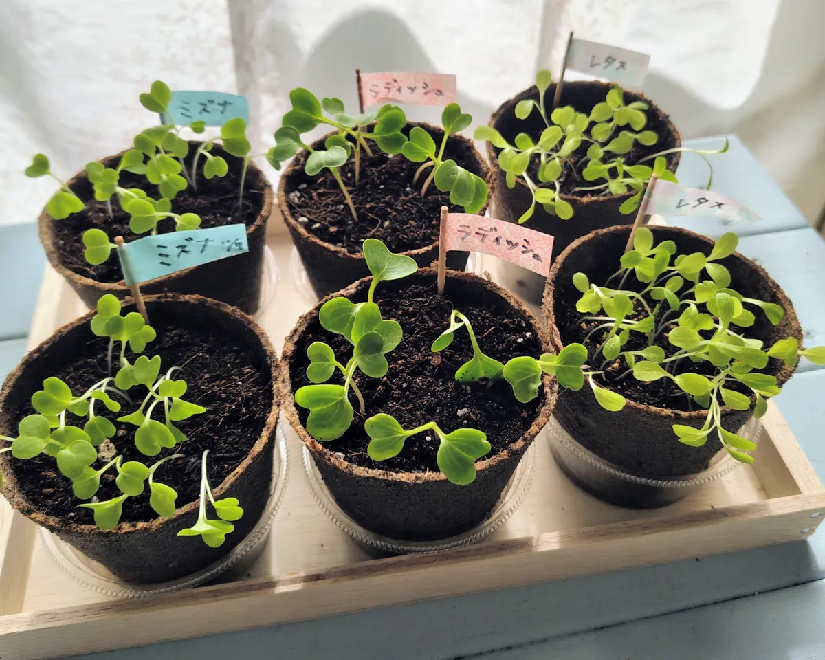 『タネから育てるおやさいハウス』で種蒔きした、ラディッシュ、水菜、ガーデンレタス