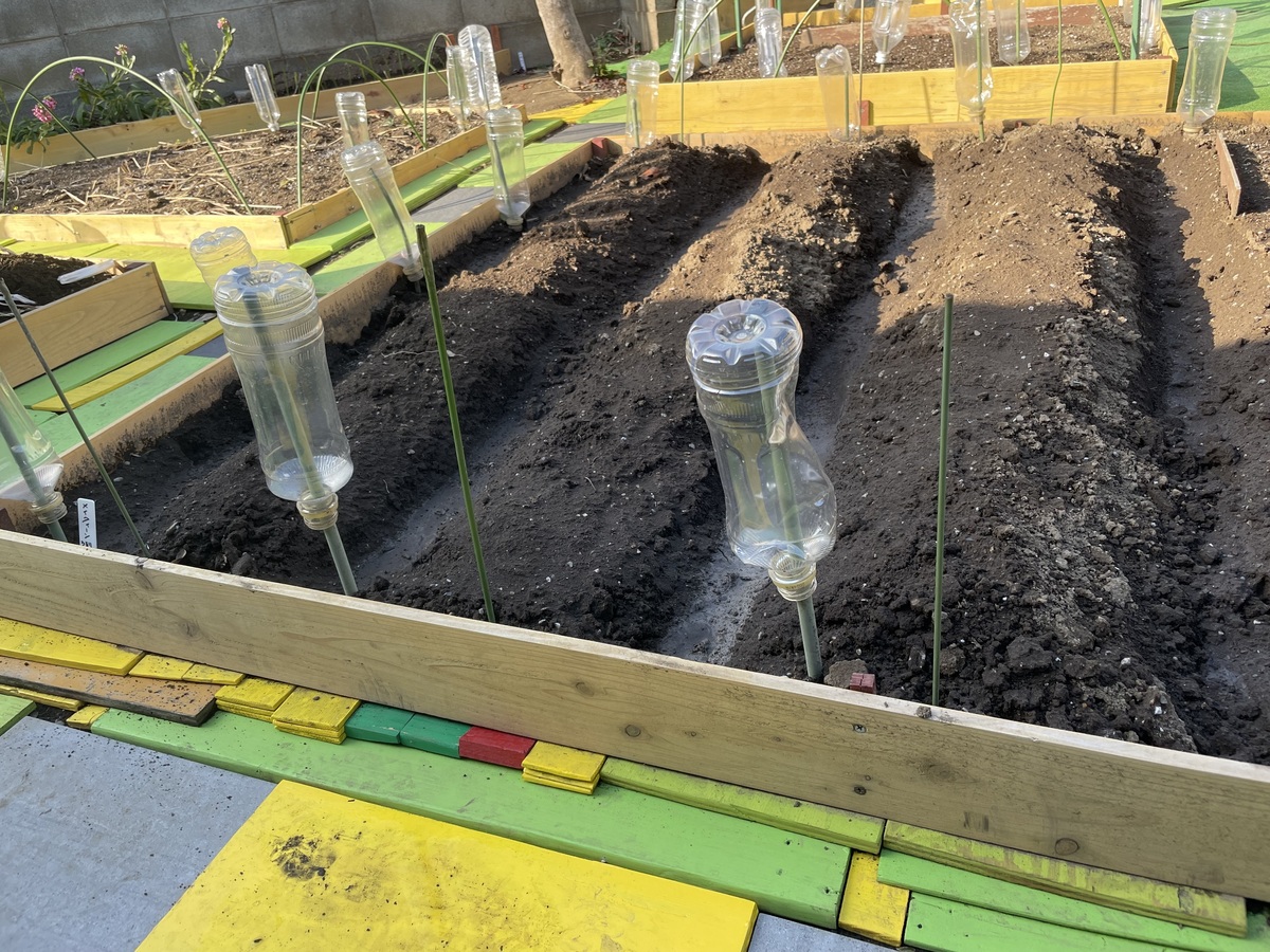 本当は、1畝辺り60㌢位の幅が理想らしいんですが、限られたエリアの中では、これが精一杯ですね。