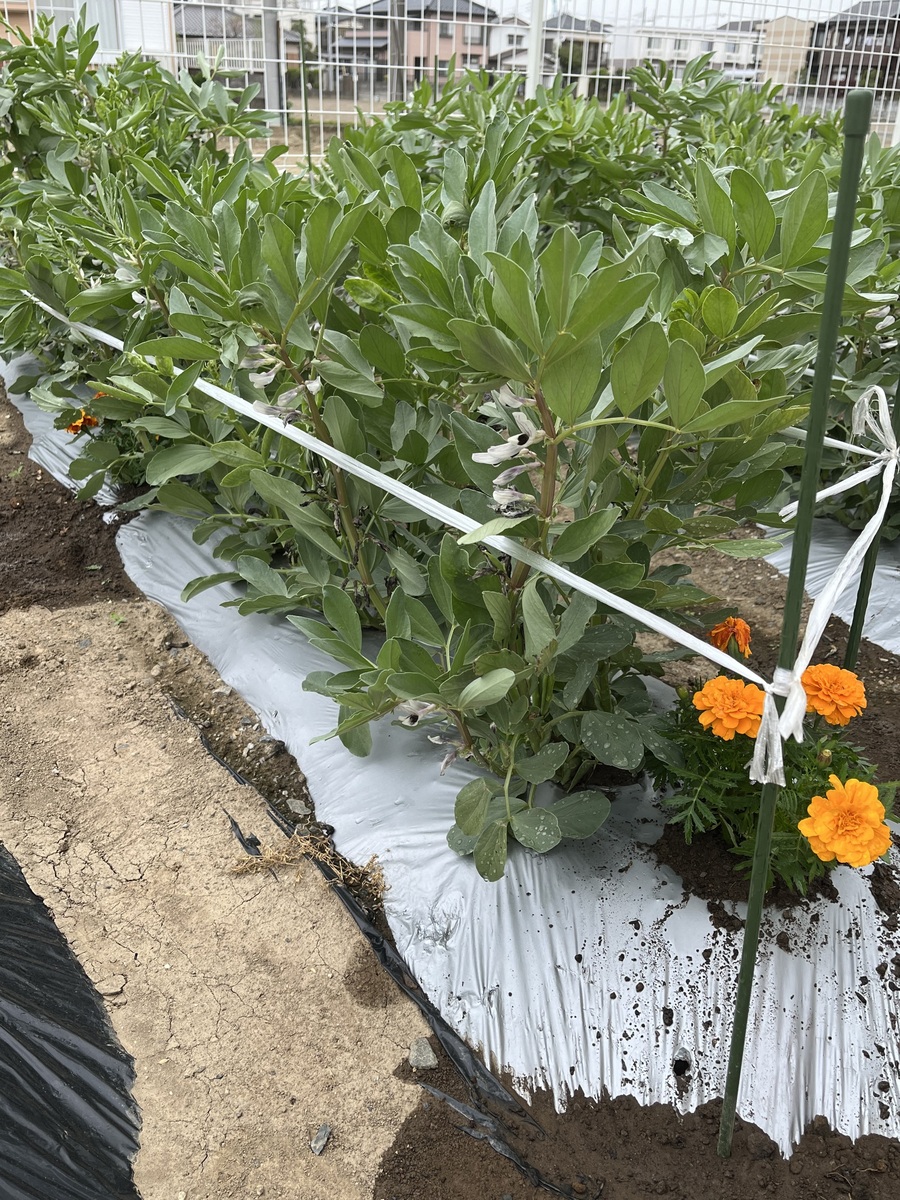 コンパニオンプランツには諸説あるようですが、妻いわく「マリーゴールドの花は匂いが強いからそれだけでもすこしは効果あるかもね。もう苗買ったんでしょう」と言うことなので畝の間に植えました。ほんと気休めかもしれません。今日はあいみょんのメロディーが頭から離れそうにありません。