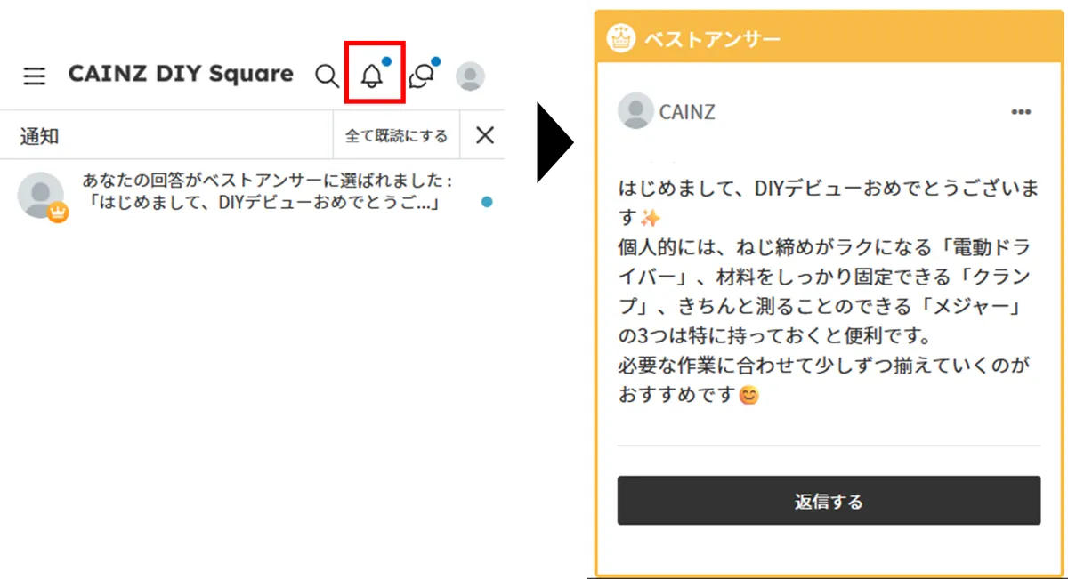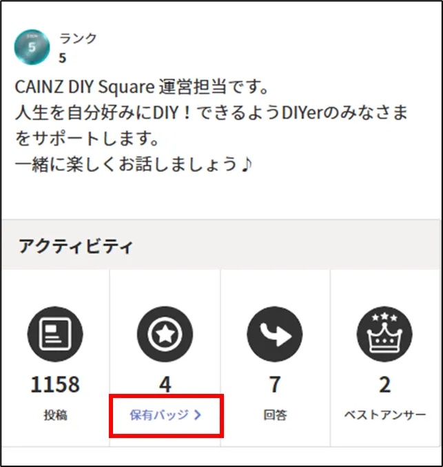 ※ベストアンサーに選ばれた回数はリセットされず、CAINZ DIY Square利用開始からの累計となります。