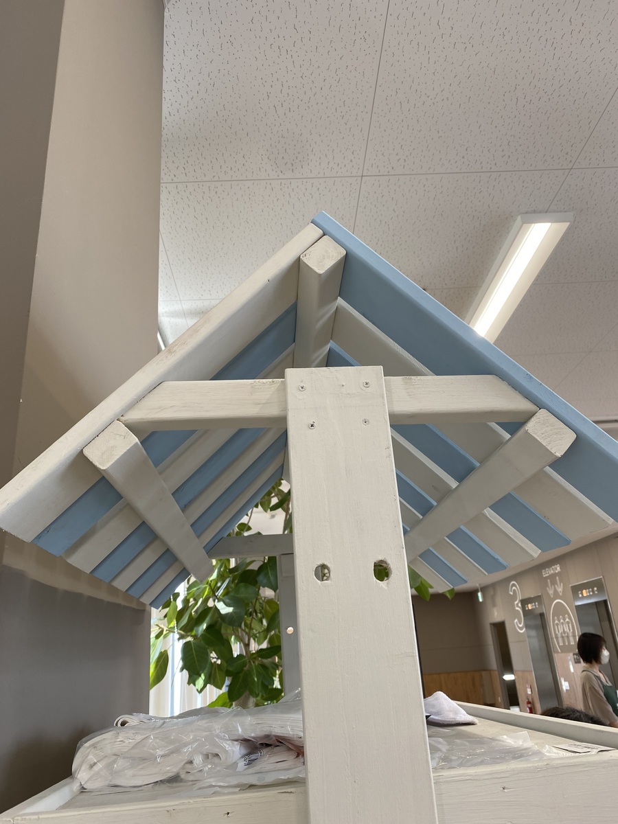 私も棚が気になります。屋根付きなんですね😊この棚も良いなあ🤗