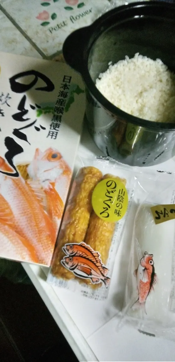 今回、お刺身が無かったので、ノドグロのちくわとかまぼこを使用しました。