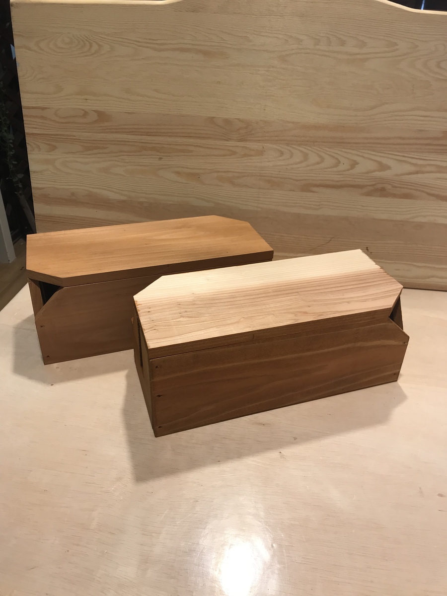 トップ > その他 > ケーブルボックス yossy4609 2022/07/03 12:35 ケーブルボックス 本日は、初めてのケーブルボックスを作りました♪ またまた、蓋の上の色を変えたくって、塗らずにお持ち帰り。蓋と本体の斜めカット部分も見本とは逆にさせてもらいました。 いいね 共有する 共有する X LINE リンクをコピー コメントする 2 件の返信 (新着順) ミュートしたユーザーの投稿です。 投稿を表示 しょうしん 2022/07/03 22:28 これはもしやオリーブグリーン🫒では? と思ったらやっぱりオリーブグリーン🫒だったんですね。 木目がきれいに出ていて素敵な作品ですね。 オリーブグリーン🫒とメープルの組み合わせ、素敵ですね。 自分は専らオリーブグリーン🫒とウォルナットが多いのですが、 他の色の組み合わせにも今後チャレンジしていきたいと思います。 いいね 返信する ミュートしたユーザーの投稿です。 投稿を表示 べるん 2022/07/03 15:19 木目が綺麗な色味ですね✨ いいね 返信する ミュートしたユーザーの投稿です。 投稿を表示 yossy4609 2022/07/03 16:10 べるんさん ありがとうございます❤️ オリーブグリーン✖️メープルは最近のお気に入りです。ちょっとハワイアン風になって可愛いです💕 いいね 返信する
