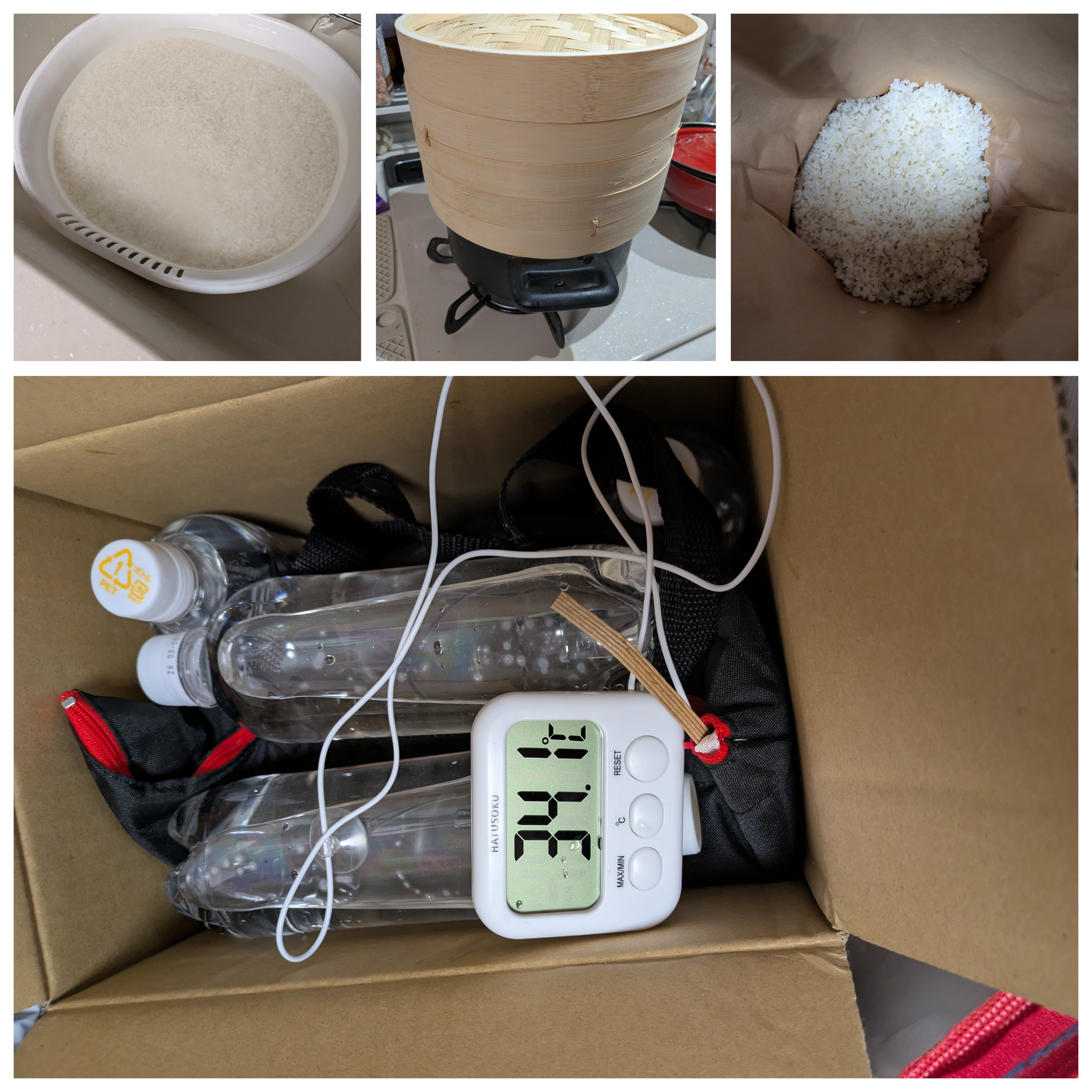 トップ > クッキング > その他 > 初めての米麹作り non 2026/01/27 23:10 初めての米麹作り 2.5キロ使って米麹作り、本日蒸して1日目の保温に入りました☺️ 10キロ用の米袋の中に入れて羽毛布団とユタポン等入れてコストコのクーラバッグの中にIN✨ 温度を気にしていると… 旦那から呆れ気味に「あなたは何に向かっているの?」と「美味しいものを食べたいに向かってる」と答えると呆れ気味に笑ってました🤣 いいね 共有する 共有する X LINE リンクをコピー コメントする 7 件の返信 (新着順) ミュートしたユーザーの投稿です。 投稿を表示 べるん 2026/01/30 20:29 米麹の作り方🤩勉強になります。 いいね 返信する ミュートしたユーザーの投稿です。 投稿を表示 non 2026/01/30 21:15 べるん べるんさん ありがとうございます😊 ネットで見るのと実際やるとの差に試行錯誤でした😂 いいね 返信する ミュートしたユーザーの投稿です。 投稿を表示 ダンボ 2026/01/29 14:22 仲良しご夫妻の楽しい会話に乾杯! いいね 返信する ミュートしたユーザーの投稿です。 投稿を表示 non 2026/01/29 18:29 ダンボ ダンボさん あはっ🤣仲良しかどうかはご想像にお任せします😁 いいね 返信する ミュートしたユーザーの投稿です。 投稿を表示 COSMOS 2026/01/28 19:32 機嫌よく育ってくれるといいですね~ 私も腹巻ですが200gほど育てたことがありますが 50時間ほどかかりました~たくさん育てたいけどお世話が… 出来上がりのご報告を楽しみにしています~💛 いいね 返信する ミュートしたユーザーの投稿です。 投稿を表示 non 2026/01/28 19:46 COSMOS COSMOSさん 腹巻で育てたんですね😍 ネットでそれも見て良いなぁと思いましたが、寝相が極端に悪いらしいので🤣辞めたほうが良いと言われました🥹 腹巻…我が子を抱いてるようで良いですね💕 いいね 返信する ミュートしたユーザーの投稿です。 投稿を表示 かずん 2026/01/28 13:55 麹菌上手くまわると良いですね💕 私も 毛布に包むやり方も調べた事がありますが まだ実践していません💦 めちゃくちゃ気になる💭👀✨ ちなみにヨーグルトメーカーでやった時は 菌のまわりが弱かったんです🦠 nonサンが上手くいったら 私も来年やってみようかしら? いいね 返信する ミュートしたユーザーの投稿です。 投稿を表示 non 2026/01/28 19:43 かずん かずんさん ありがとうございます😊 本当に上手くまわると…期待して😅 我が家はヨーグルトメーカー小さめなので除外💦 途中から要らなくなった羽毛布団に包んだら湿度&温度的には良い感じになりましたが果たしてどの様な結果に、ネットで多めの方が成功しやすいと載っていたので欲をかいて3キロ仕込みましたが、1キロの方が温度管理がしやすいかもです😓 まぁ麹菌が残ってるので成功するまで遊びながら実験ですね🤣 いいね 返信する ミュートしたユーザーの投稿です。 投稿を表示 かずん 2026/01/28 21:05 non わぁ~凄い 3kgですか? 多めの方が成功しやすいんですね✌️ 毛布とアンカで出来るとか コタツで…とか見た事がありますが コタツは火事になっても困りますもんね😱💦 すっごい楽しみです(*´艸`) 出来上がったら投稿お願いしま~す☺️✨ いいね 返信する ミュートしたユーザーの投稿です。 投稿を表示 ka-ko 2026/01/28 07:41 素晴らしい👏👏👏 美味しいもの食べたい食べたい💕 でもそこまでできるのが💯 いいね 返信する ミュートしたユーザーの投稿です。 投稿を表示 non 2026/01/28 12:56 ka-ko ka-koさん ありがとうございます😊 果たして成功するかどうか😅 ちょっとドキドキしながら夜の確認楽しみです❤️ いいね 返信する ミュートしたユーザーの投稿です。 投稿を表示 ka-ko 2026/01/28 21:54 non また報告楽しみにしています! 新しいチャレンジワクワクしますね✨ いいね 返信する ミュートしたユーザーの投稿です。 投稿を表示 usupy 2026/01/28 07:29 手作りの米麹ですか〜素敵。 ご主人にはわからない“お楽しみ”ですね! 温度調整が難しそう🤭 いいね 返信する ミュートしたユーザーの投稿です。 投稿を表示 non 2026/01/28 12:54 usupy usupyさん ありがとうございます😊 自分だけの自己満足で頑張ります😅 取っておいたペットボトル重宝してます✨👍 いいね 返信する ミュートしたユーザーの投稿です。 投稿を表示 りお 2026/01/28 01:56 おいしい物食べるのは大変 いいね 返信する ミュートしたユーザーの投稿です。 投稿を表示 non 2026/01/28 12:53 りお りおさん コメントありがとうございます😊 ひと手間ふた手間自己満足🤭 いいね 返信する