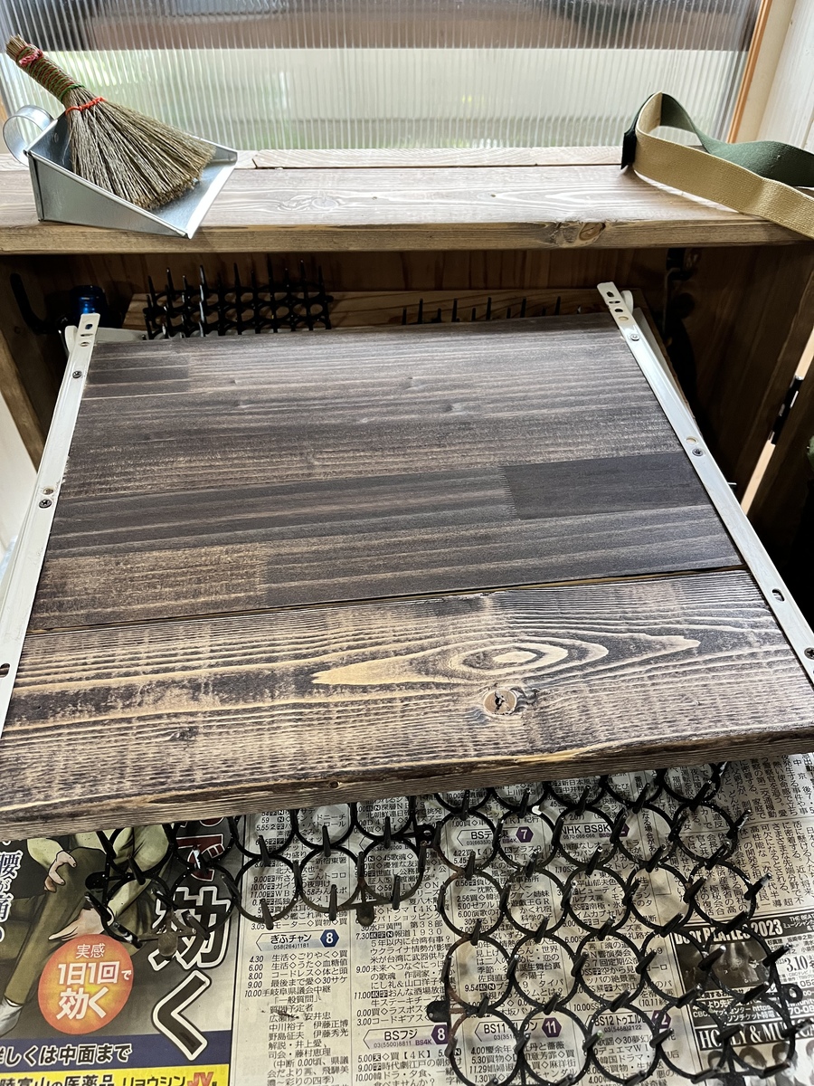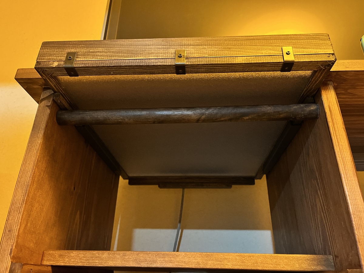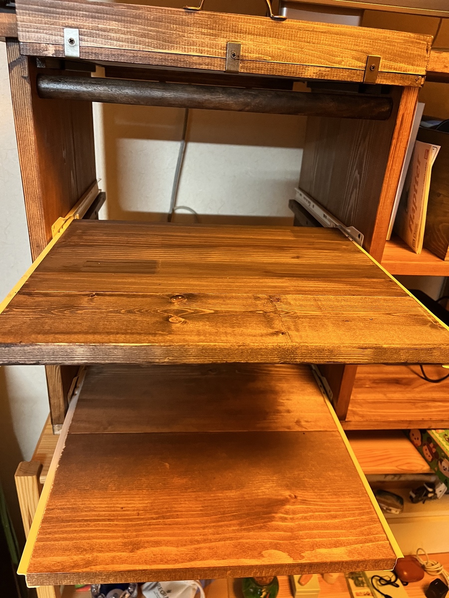 作り終わってからスライド棚にも取手があった方が便利だと思い、あとで付けました。