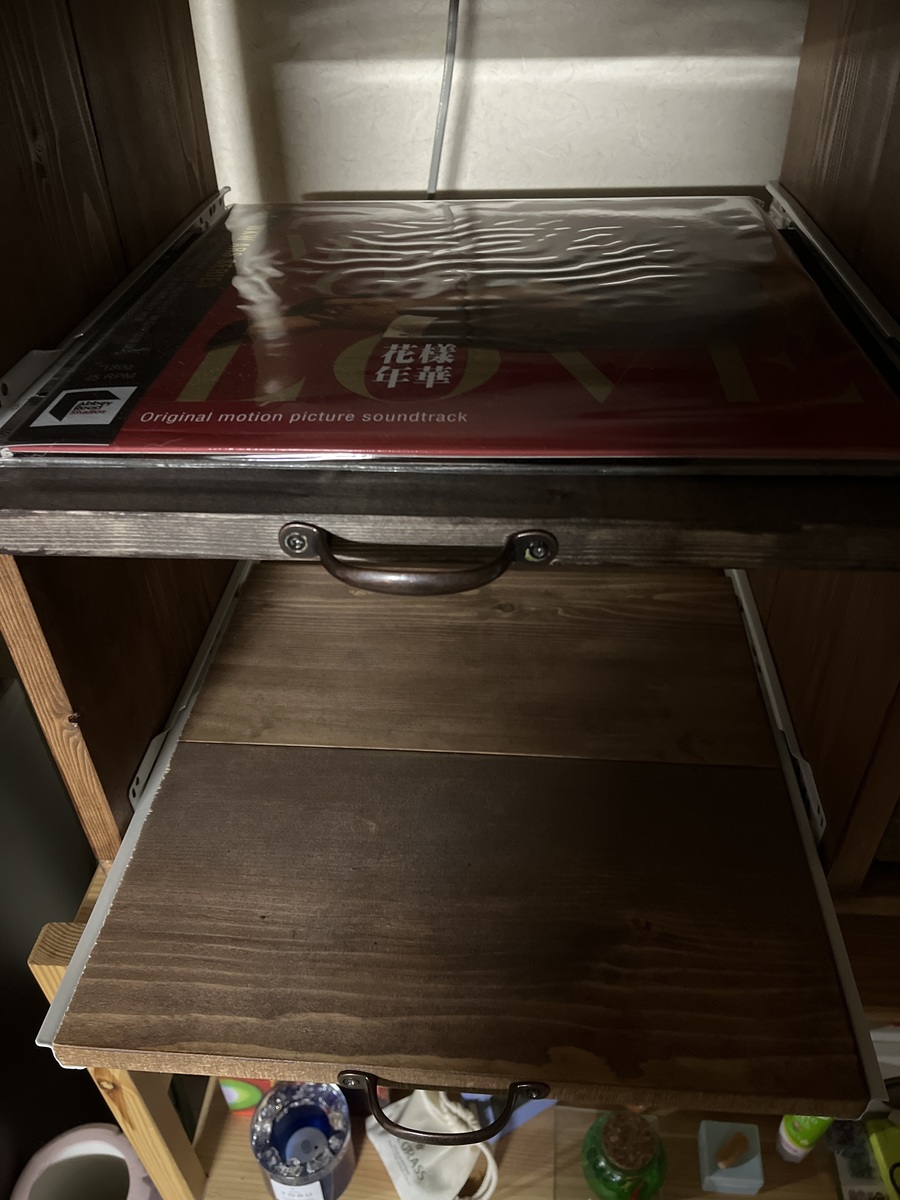 レコードを飾ったまま扉を収納しようとするとかなり窮屈...