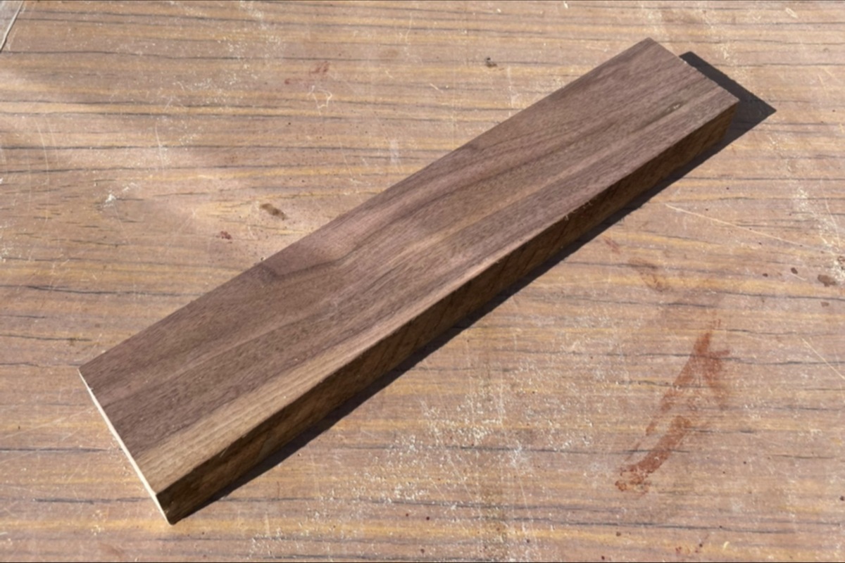 ネットで仕入れたウォールナット端材(下の画像)を使用しました。銘木の一つと言われ、非常に硬く、ずっしり重く、質感が全く違います。