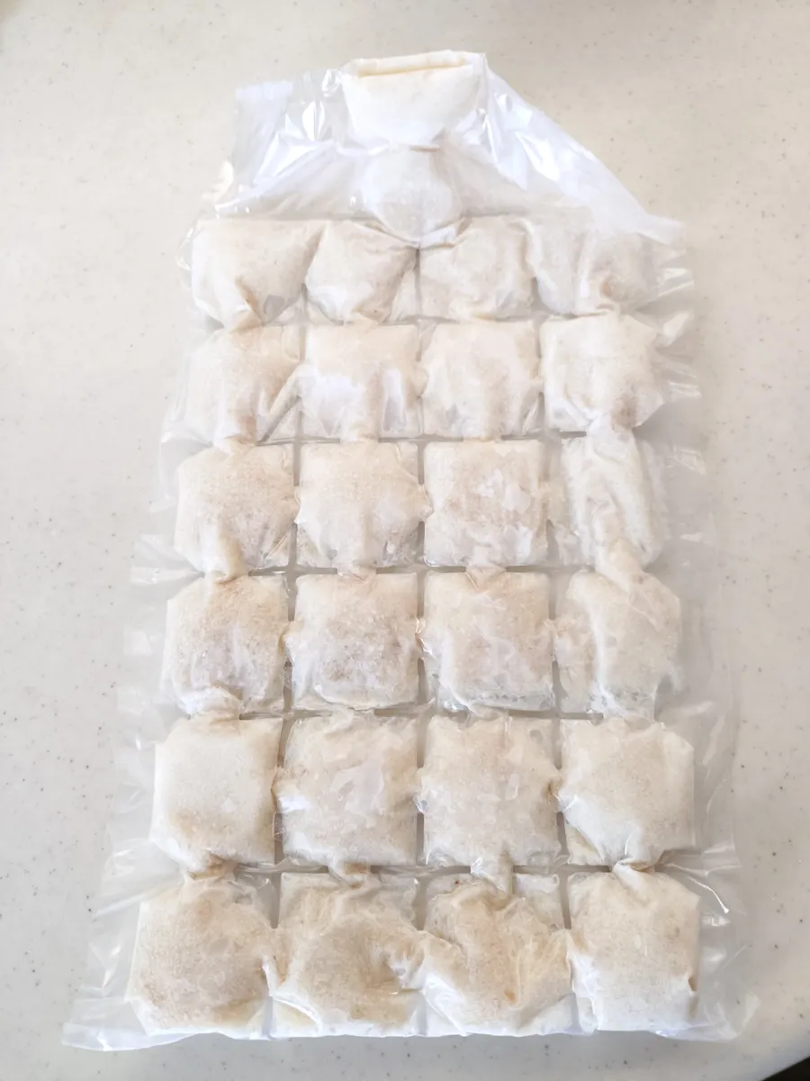氷🧊バックにして凍ったらハサミ✂️で1ブロックずつカットしておくと使いたい分だけ解凍出来ます😀