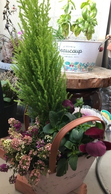 鉢の色とアリッサムの色が合ってるのとアリッサムのあふれる感じが素敵です😍🩷
