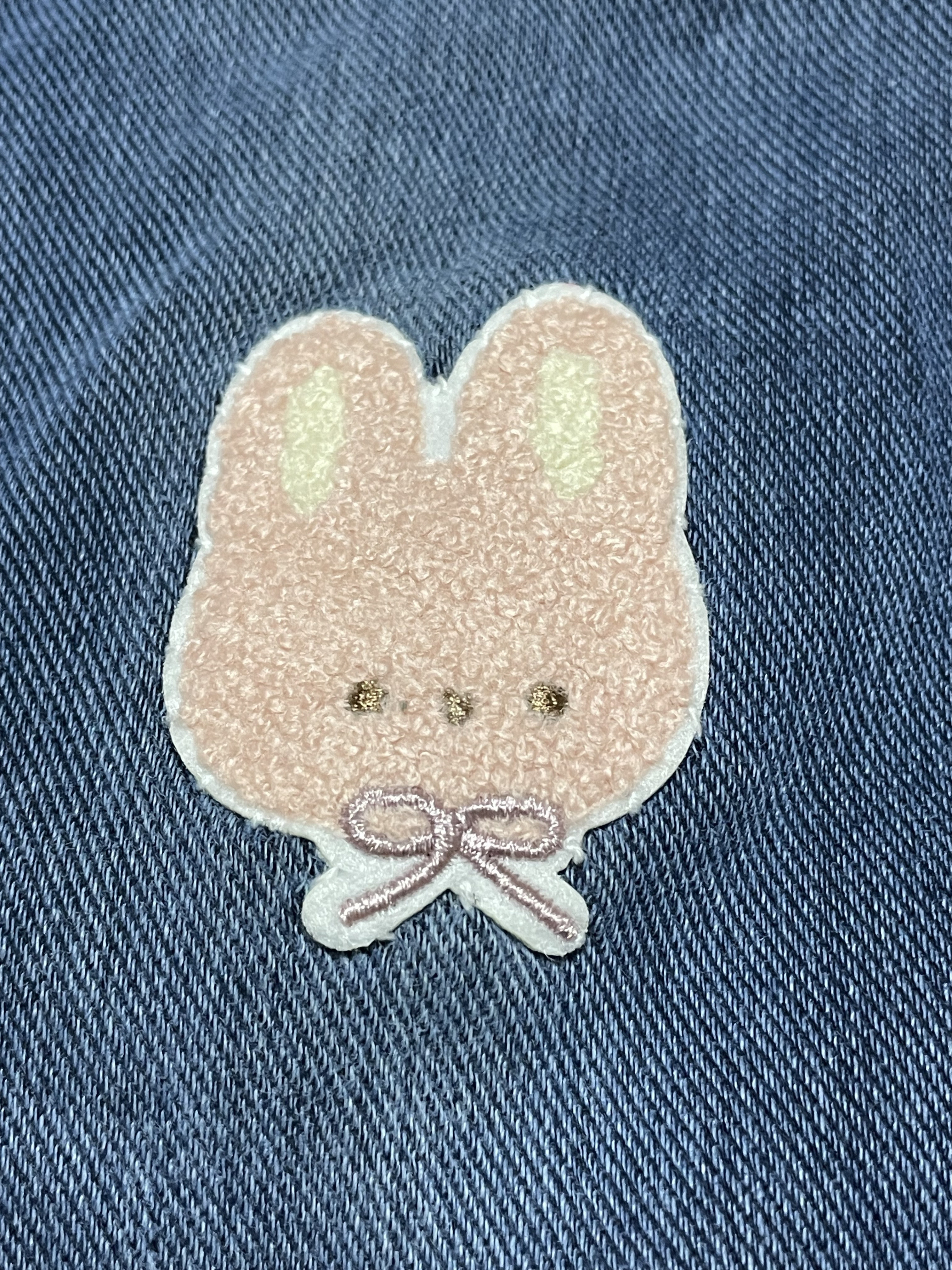 ついつい、履き易いものばかり、、なので、膝の所が薄くなってきて😅子どもでも無いのに、ウサギのワッペンをつけてみました!アイロンで、OKなのですが、もしものことを考えて、まわりをチクチク!