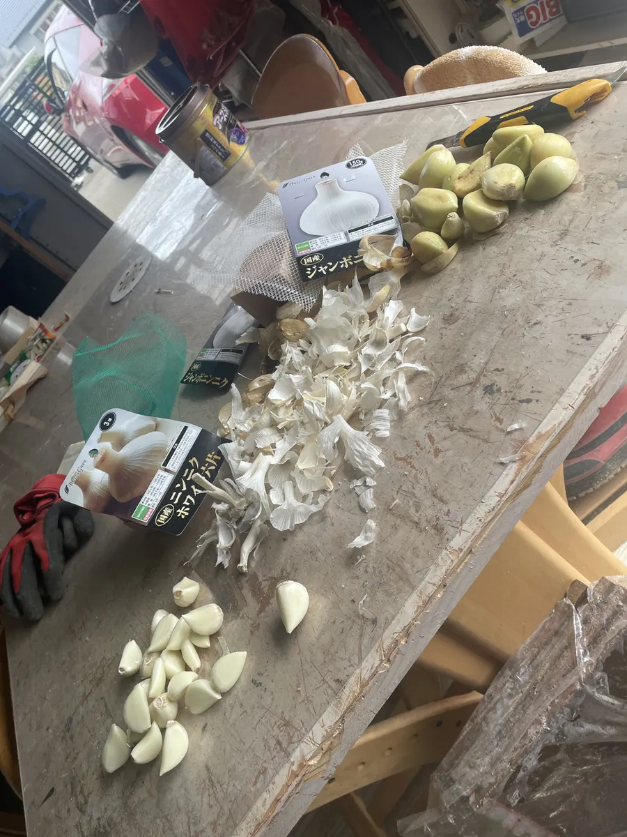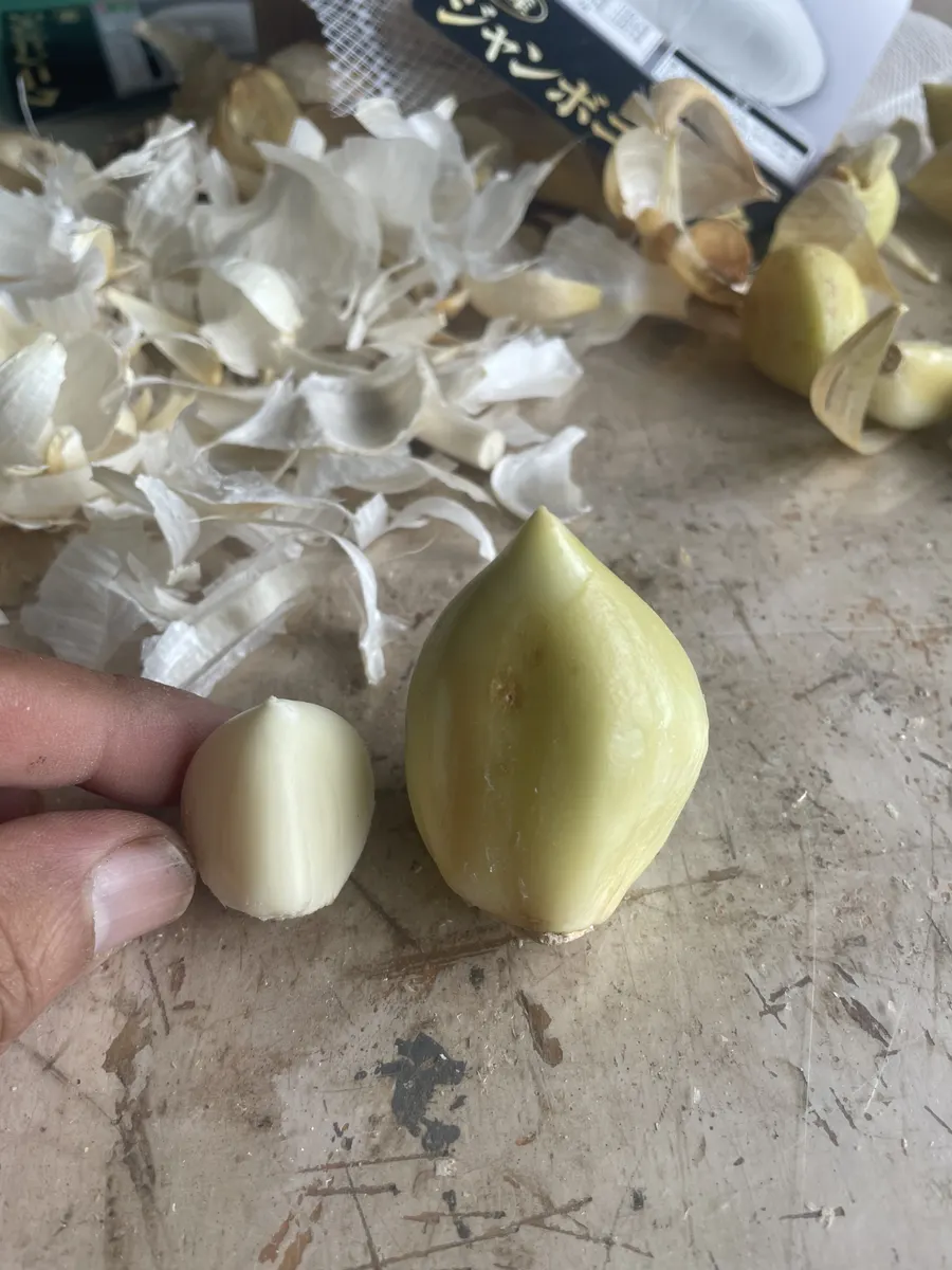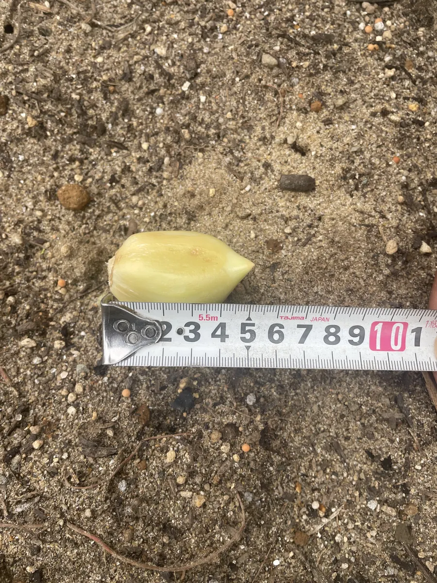 大きさの比較です。ジャンボニンニクは大きいですねー、肝心の味はどうなんだろぉ😅