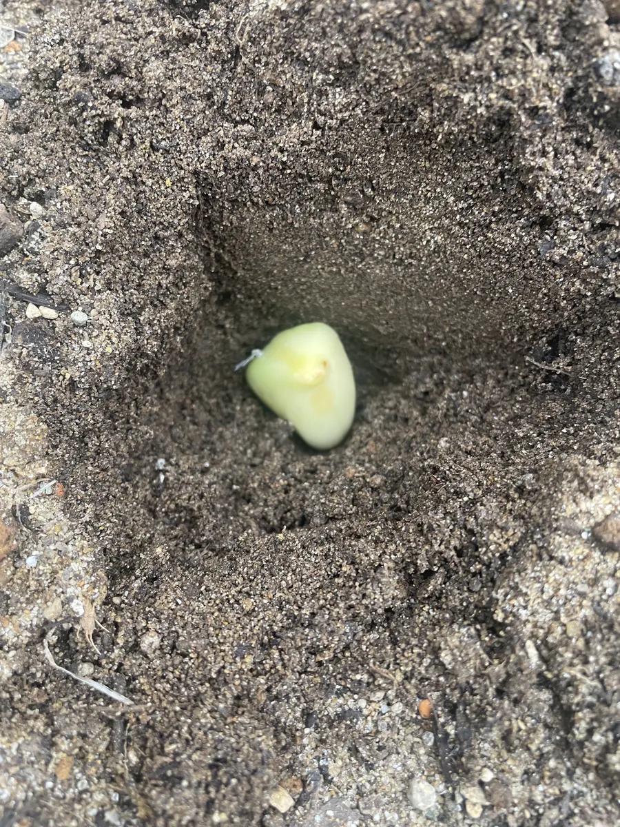 大体ニンニクの大きさの倍なのでこのジャンボだと10センチ位の穴を掘ります。