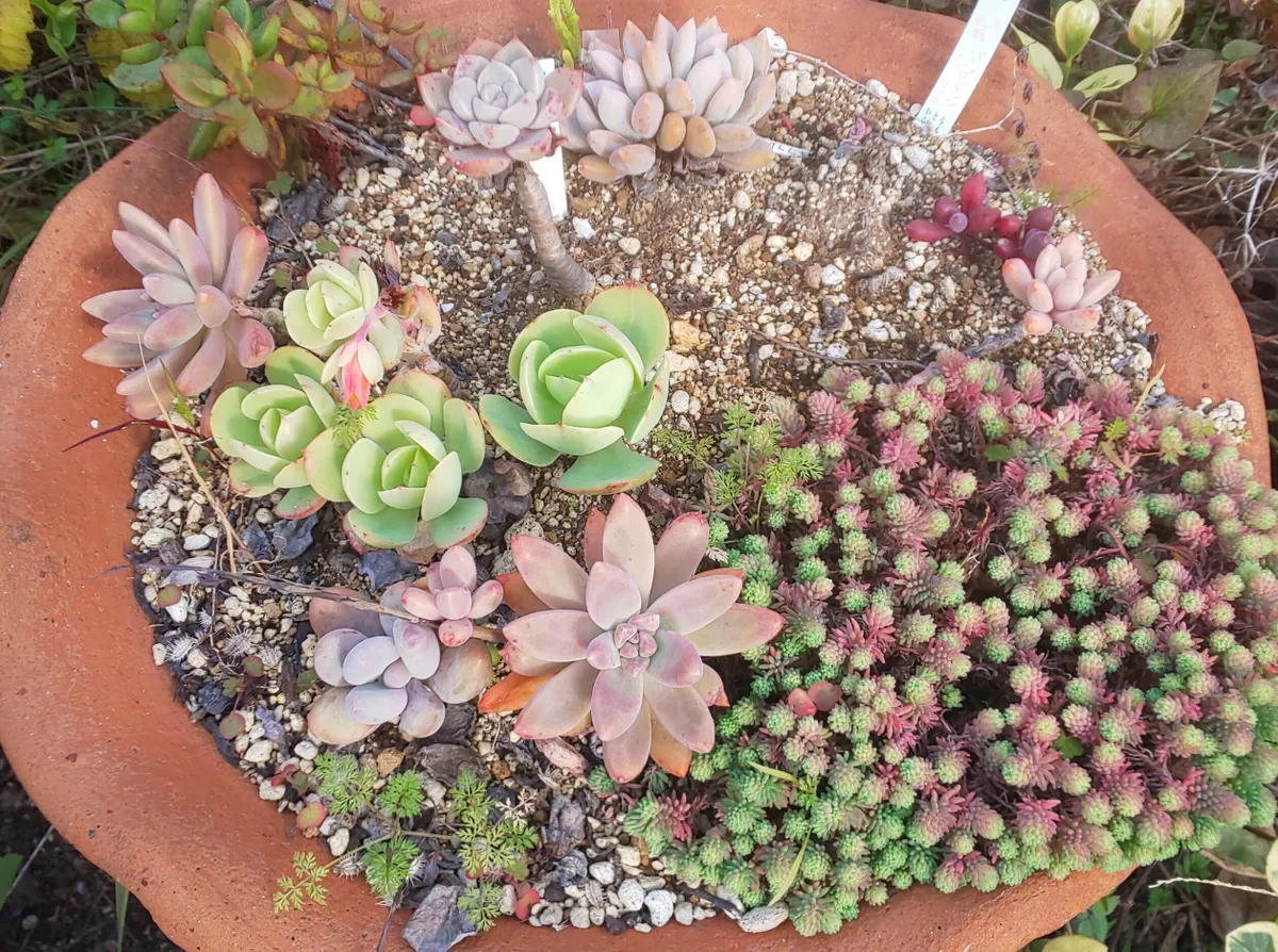 良い感じにテラコッタの鉢の多肉が紅葉してきたので合体させてみました
