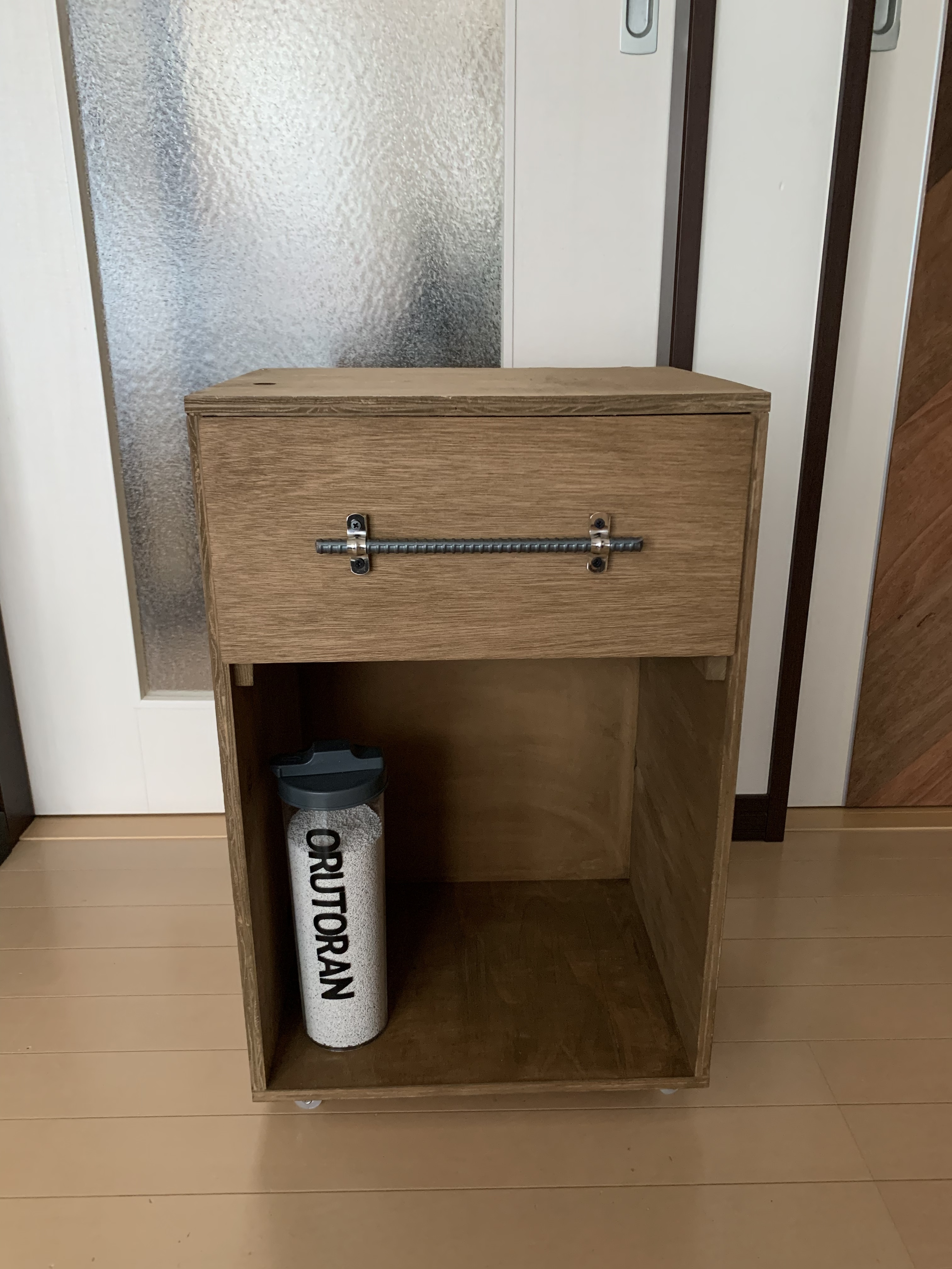 んで、引き出しの取っ手として使った鉄筋を背面にも施してるから、それを掴んで持ち上げられる様にしたのかしらって😆⁉️✨