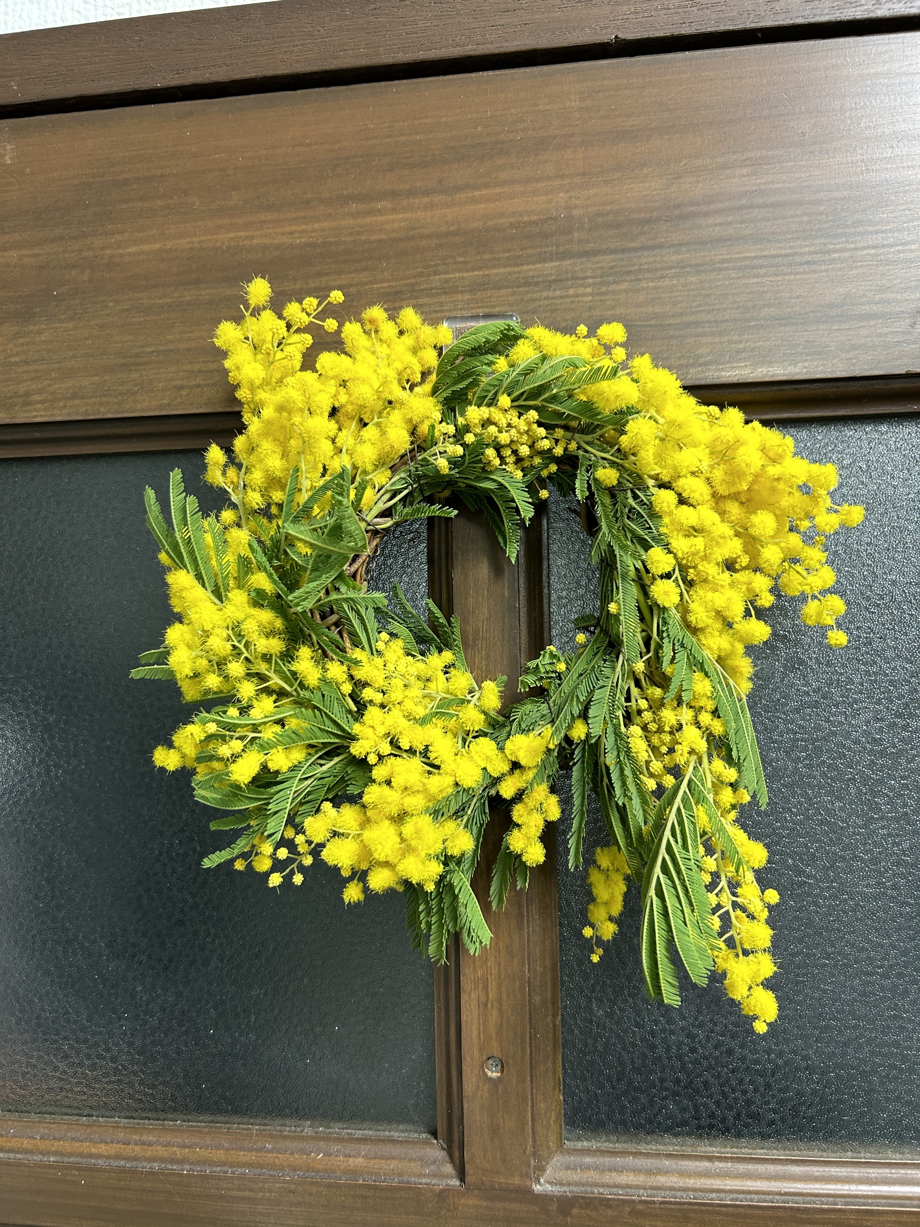 投稿を表示ミモザのリース可愛らしいですね〜😊