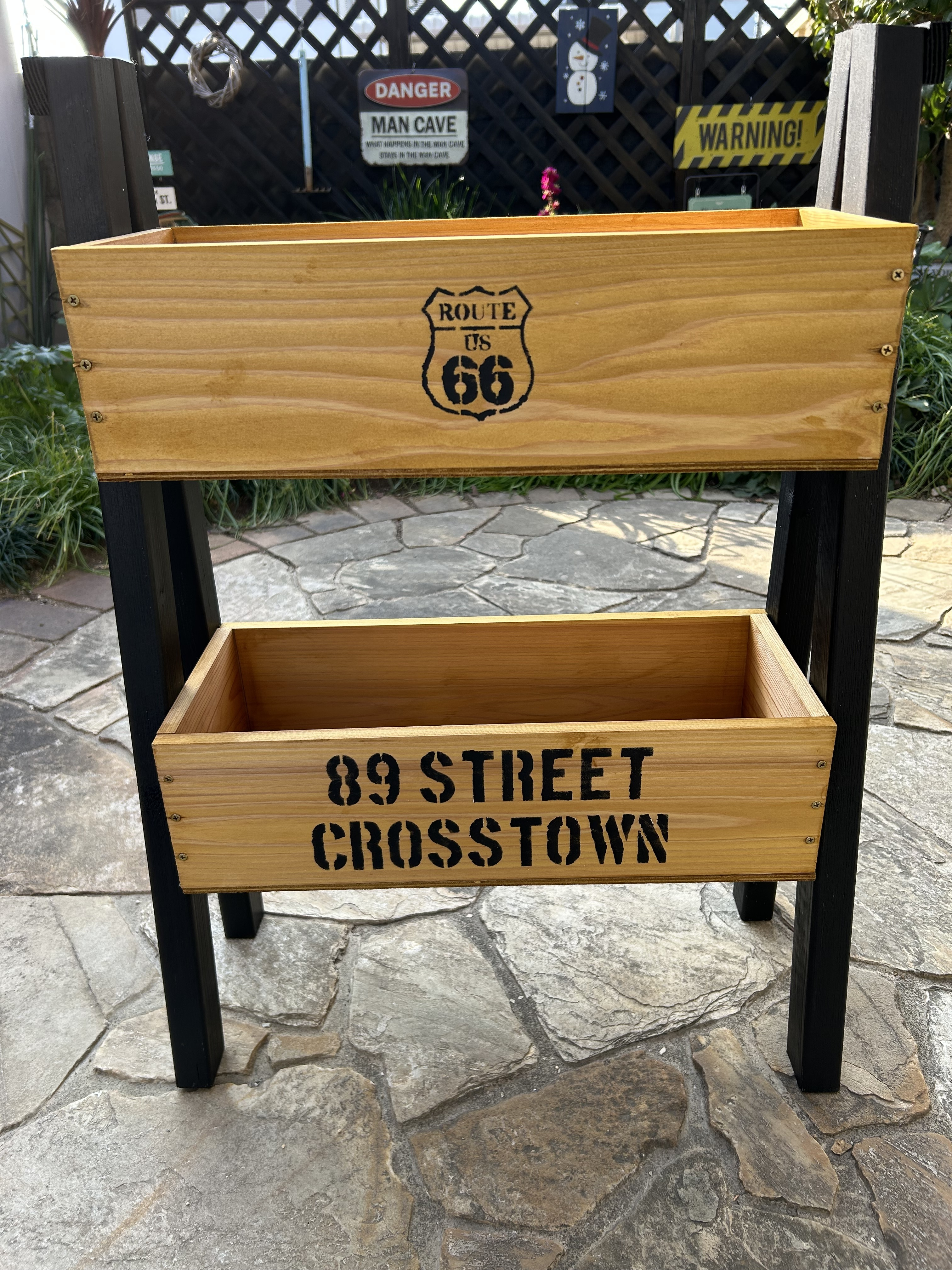 黒が効いてるしステンシルのロゴのイメージとぴったり!玄関に置いたら目を引きますね〜😆