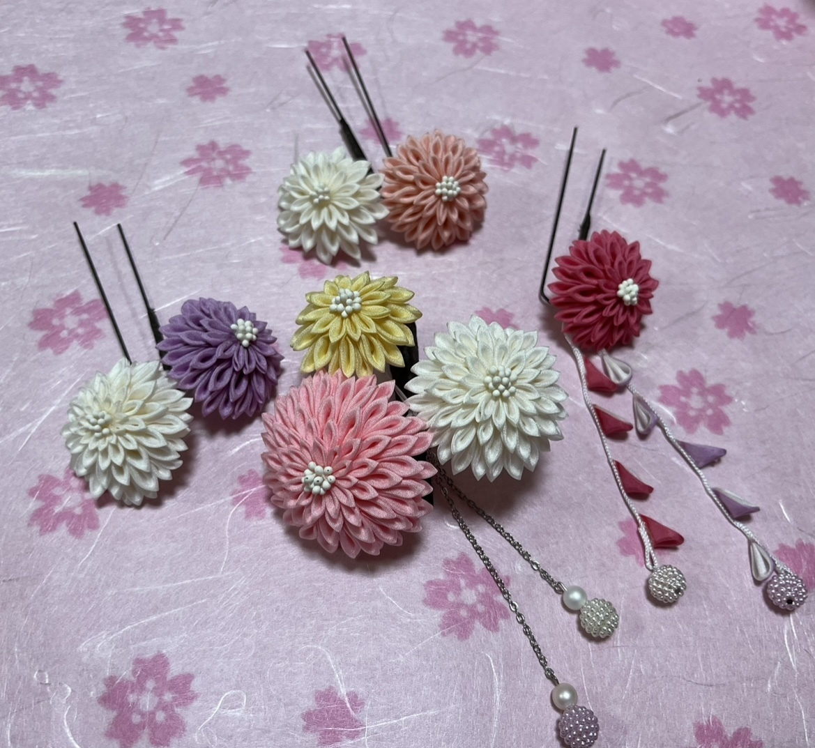 これは、髪飾りと帯飾りを作っている時の写真です🥰