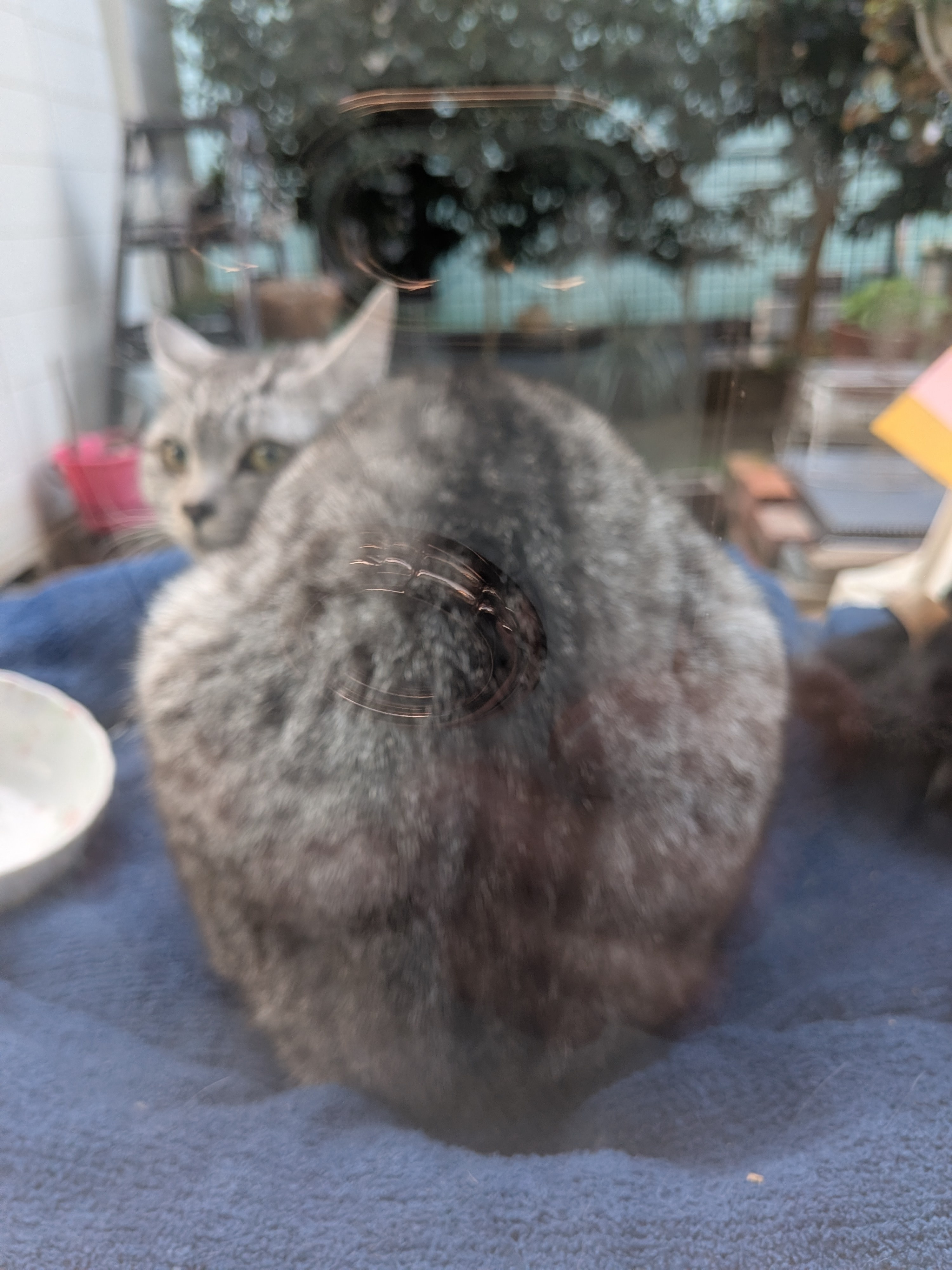 ふわふわおしりがガラス窓越しに✨