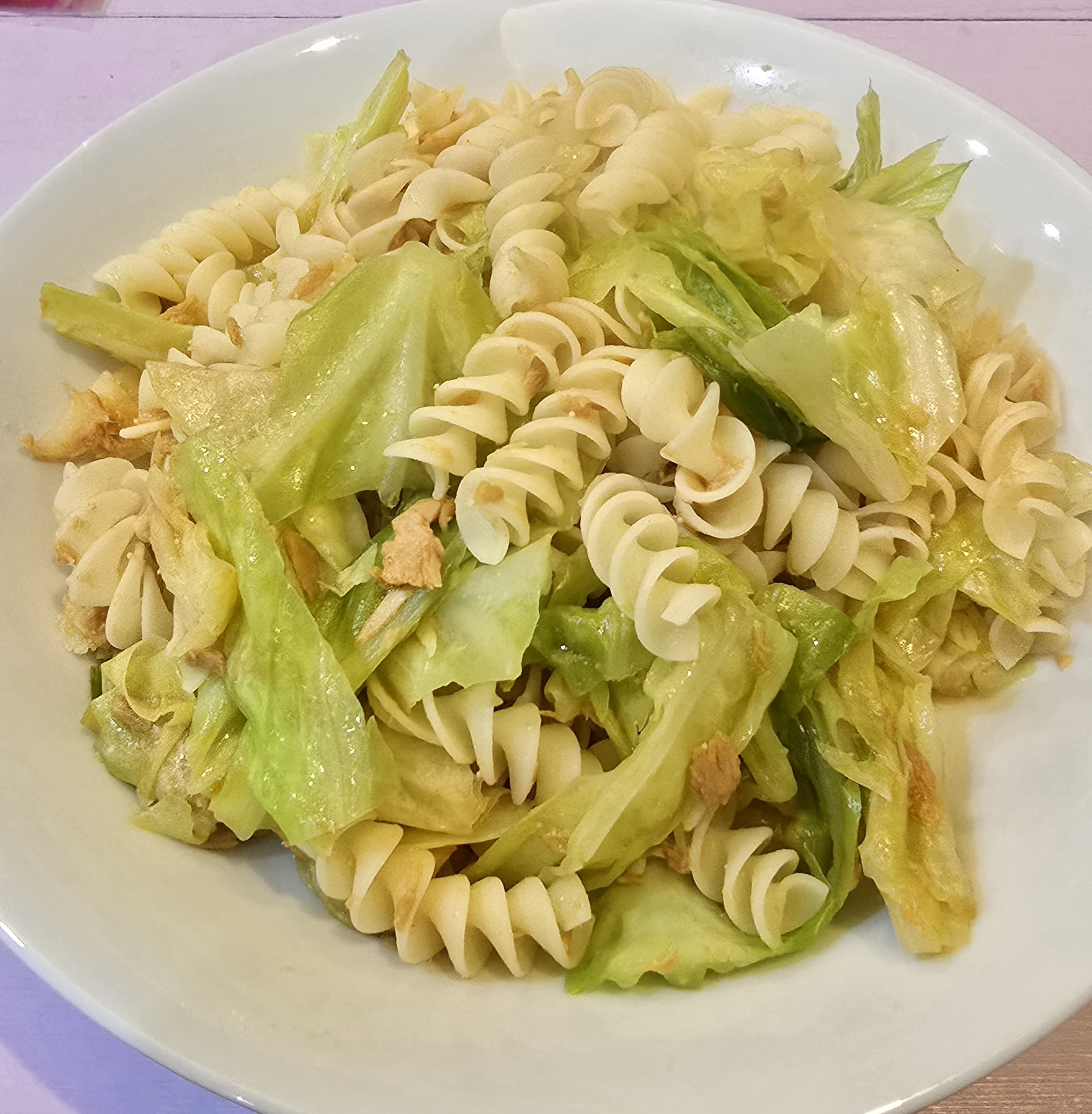 晩ごはん(フジッリとキャベツのペペロンチーノ風パスタ♪)