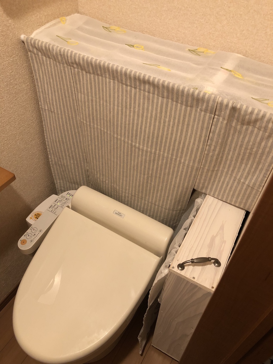 今回は2段目の板はトイレブラシは別にあるので、そのまま板のままにしてます。