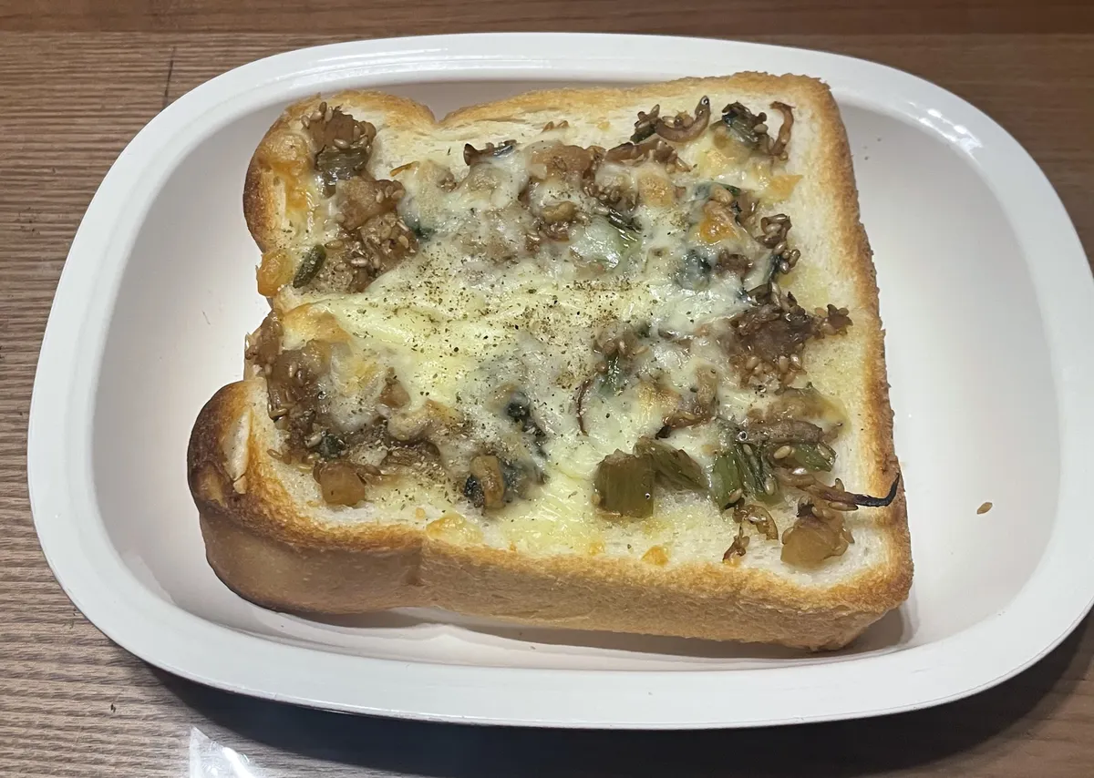 【シラスと大根茎&蕪の葉のお雑魚ふりかけアレンジ①ふりかけチーズトースト😋🐟🌿🧀🍞✨】