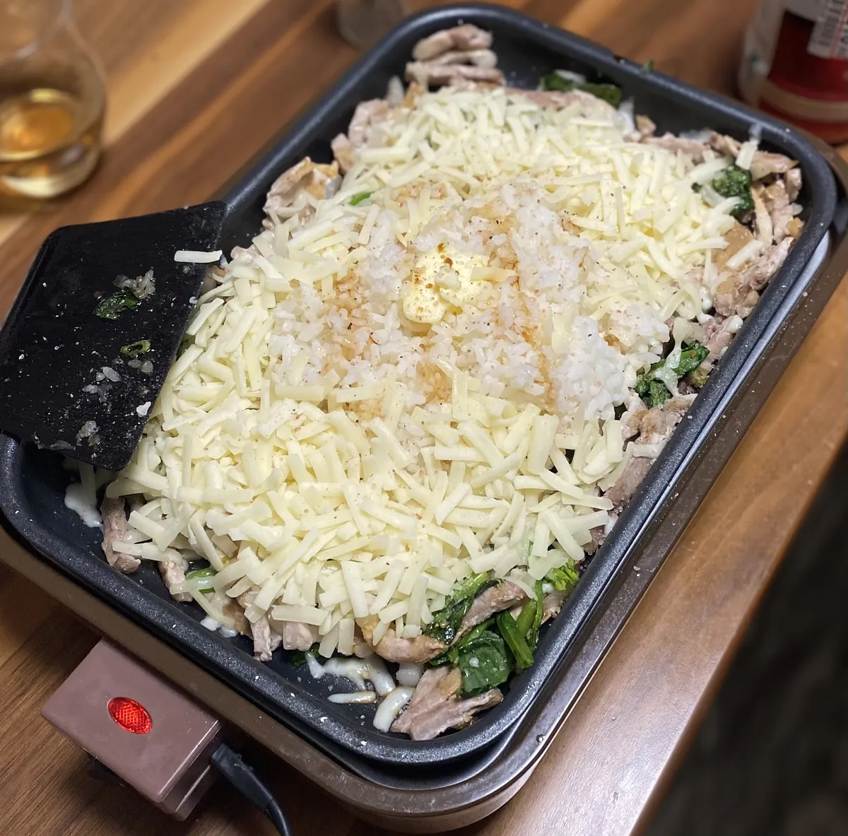 トップ > クッキング レシピ > 料理 > ホットプレートdeチーズライス ちーず 2026/01/10 20:40 ホットプレートdeチーズライス ■材料 豚肉、ほうれん草、ピザ用チーズ、ご飯、ネギ バター、醤油、黒胡椒、塩 ■作り方 ①ホットプレートで細切りにした豚肉とほうれん草を炒めます ②火が通ったら周りに広げ、真ん中にご飯を入れ、上からバター、醤油、黒胡椒、塩を振りかけます。 その周りには溢れんばかりのチーズを入れます ③更に上からネギをかけて、チーズがとろけてきたら出来上がり😋 食べる時は混ぜてから取り分けて下さい ■工夫ポイント チーズとバター醤油はたっぷりと、塩は控えめでも大丈夫です👌 ちーずレシピ ちーず飯 ちーずcooking いいね 共有する 共有する X LINE リンクをコピー コメントする 6 件の返信 (新着順) ミュートしたユーザーの投稿です。 投稿を表示 ダンボ 2026/01/19 19:31 みんなで楽しく食べられるところが良いですね! いいね 返信する ミュートしたユーザーの投稿です。 投稿を表示 ちーず 2026/01/19 20:35 ダンボ ありがとうございます😊 みんなで作るの美味しさUP⤴️です😋 いいね 返信する ミュートしたユーザーの投稿です。 投稿を表示 ふーふーちゃん 2026/01/12 08:41 美味しそうですね💞 皆でワイワイ言いながら食べたいです💞 いいね 返信する ミュートしたユーザーの投稿です。 投稿を表示 ちーず 2026/01/12 11:15 ふーふーちゃん ありがとうございます😊💕 ホットプレートはみんなで囲むとなお美味い😋 いいね 返信する ミュートしたユーザーの投稿です。 投稿を表示 はっちゃん 2026/01/12 21:35 ふーふーちゃん 美味しそう いいね 返信する ミュートしたユーザーの投稿です。 投稿を表示 toshi 2026/01/11 13:32 チーズがたくさんで美味しそうですね これは良いですね😊 いいね 返信する ミュートしたユーザーの投稿です。 投稿を表示 ちーず 2026/01/12 05:16 toshi ありがとうございます😊 チーズは正義です😋💕 いいね 返信する ミュートしたユーザーの投稿です。 投稿を表示 toshi 2026/01/12 07:05 ちーず そうですね ちーずさんも正義ですね😊 いいね 返信する ミュートしたユーザーの投稿です。 投稿を表示 ちーず 2026/01/12 11:12 toshi あら🤣 いいね 返信する ミュートしたユーザーの投稿です。 投稿を表示 かふぇ 2026/01/11 09:59 チーズたっぷりで美味しそうです😄 いいね 返信する ミュートしたユーザーの投稿です。 投稿を表示 ちーず 2026/01/11 18:45 かふぇ ありがとうございます😊 チーズたっぷりがたまらなく好きです😋 いいね 返信する ミュートしたユーザーの投稿です。 投稿を表示 ぷぅ 2026/01/11 02:19 美味しそう〜 いいね 返信する ミュートしたユーザーの投稿です。 投稿を表示 ちーず 2026/01/11 07:16 ぷぅ ありがとうございます😊 いいね 返信する ミュートしたユーザーの投稿です。 投稿を表示 Milk 2026/01/11 02:11 チーズとバターたっぷりで背徳感ありますね〜🤭 罪悪感を感じながらも食べちゃいますね✨ いいね 返信する ミュートしたユーザーの投稿です。 投稿を表示 ちーず 2026/01/11 07:15 Milk ありがとうございます😊 やっぱりたっぷりが美味しいんですもん💕 この背徳感がたまらない😁 いいね 返信する