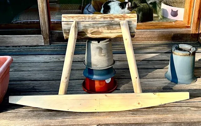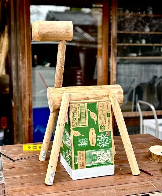 植木鉢いくつか重ねてこんなもんかなー?の高さにして胴体を置いてみたんだけど、これは治具がいるなー🤔。