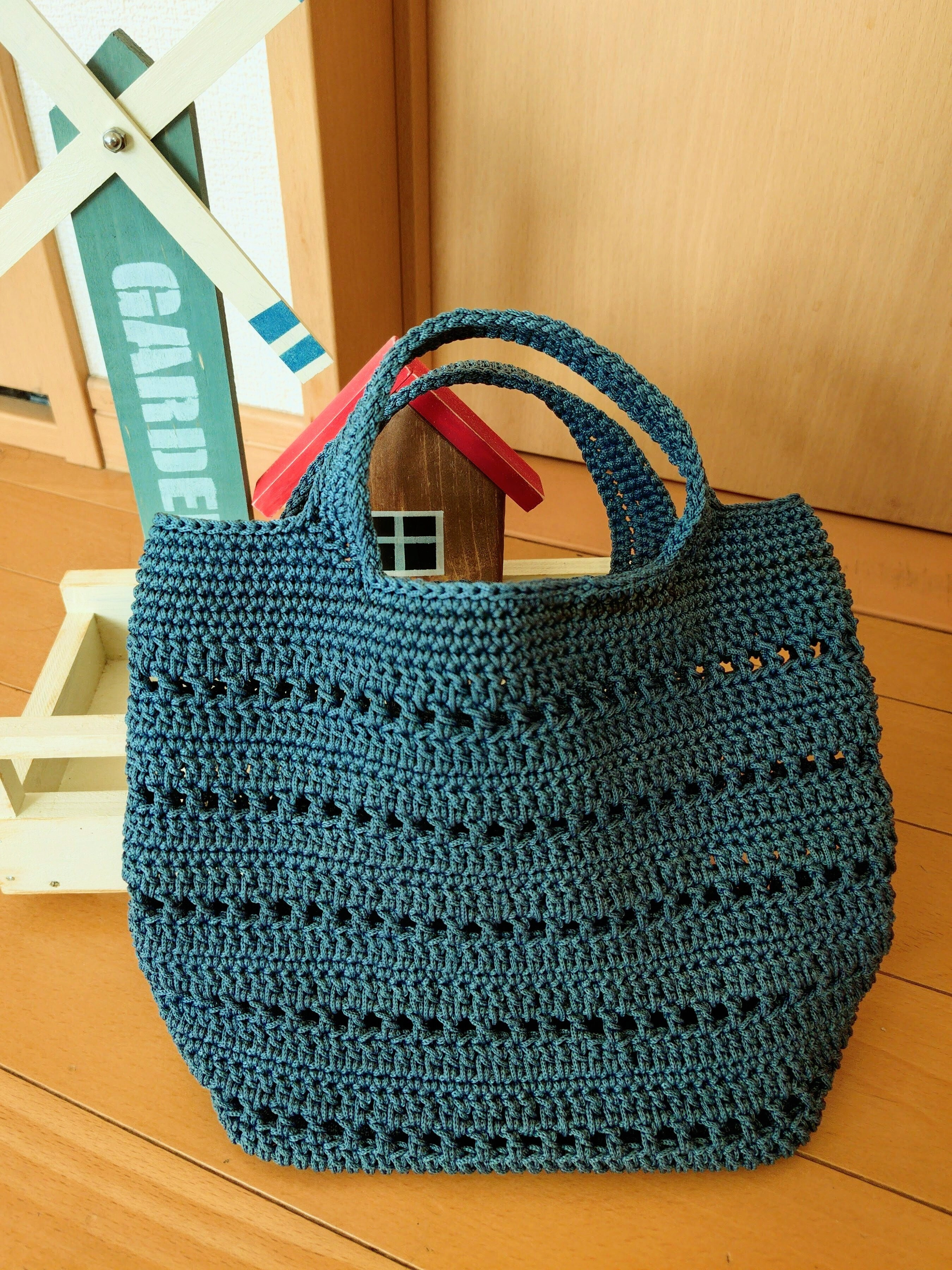 投稿を表示綺麗なブルーの手編みバッグ、素敵ですね〜😍❤️