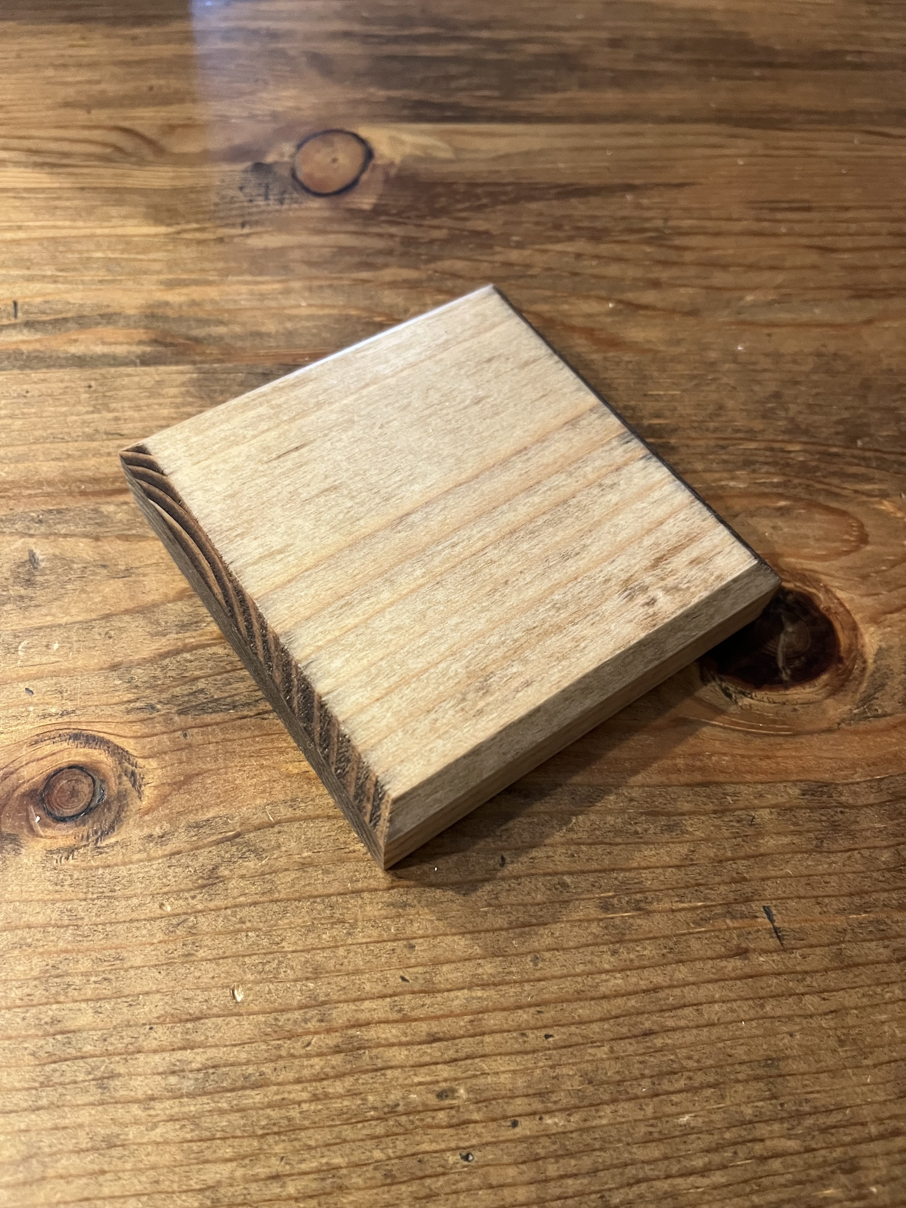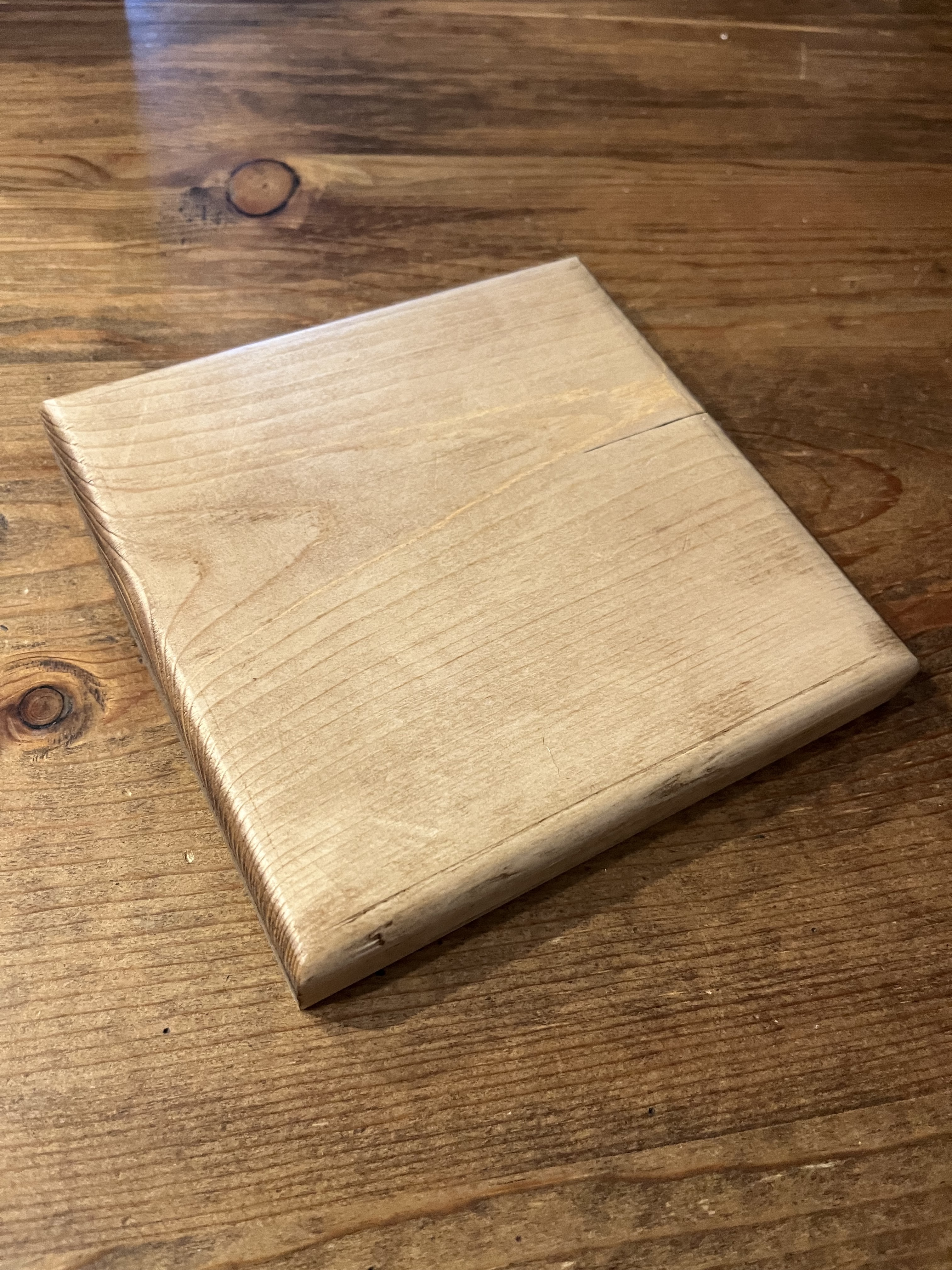 形は八角形とか、糸鋸で花形とかも考えましたが、我が家でも使っていて1番使いやすいシンプルな正方形にしました。角はトリマーで丸く仕上げました。