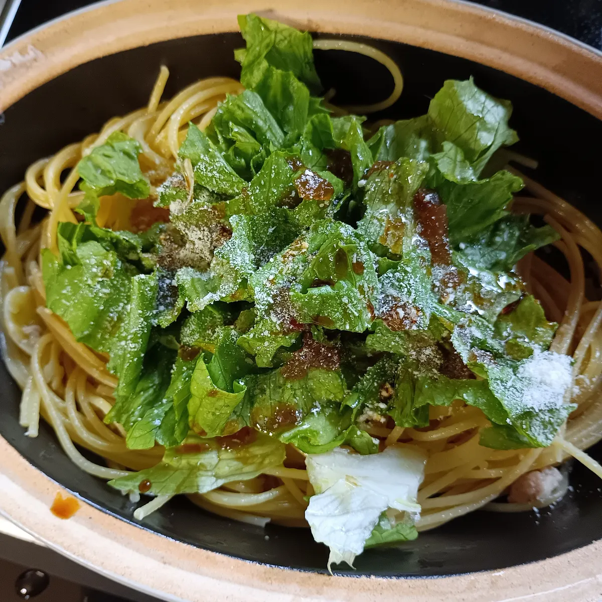 夏は冷たくてもいいかなと思ったけれど、温かパスタでいただきました。