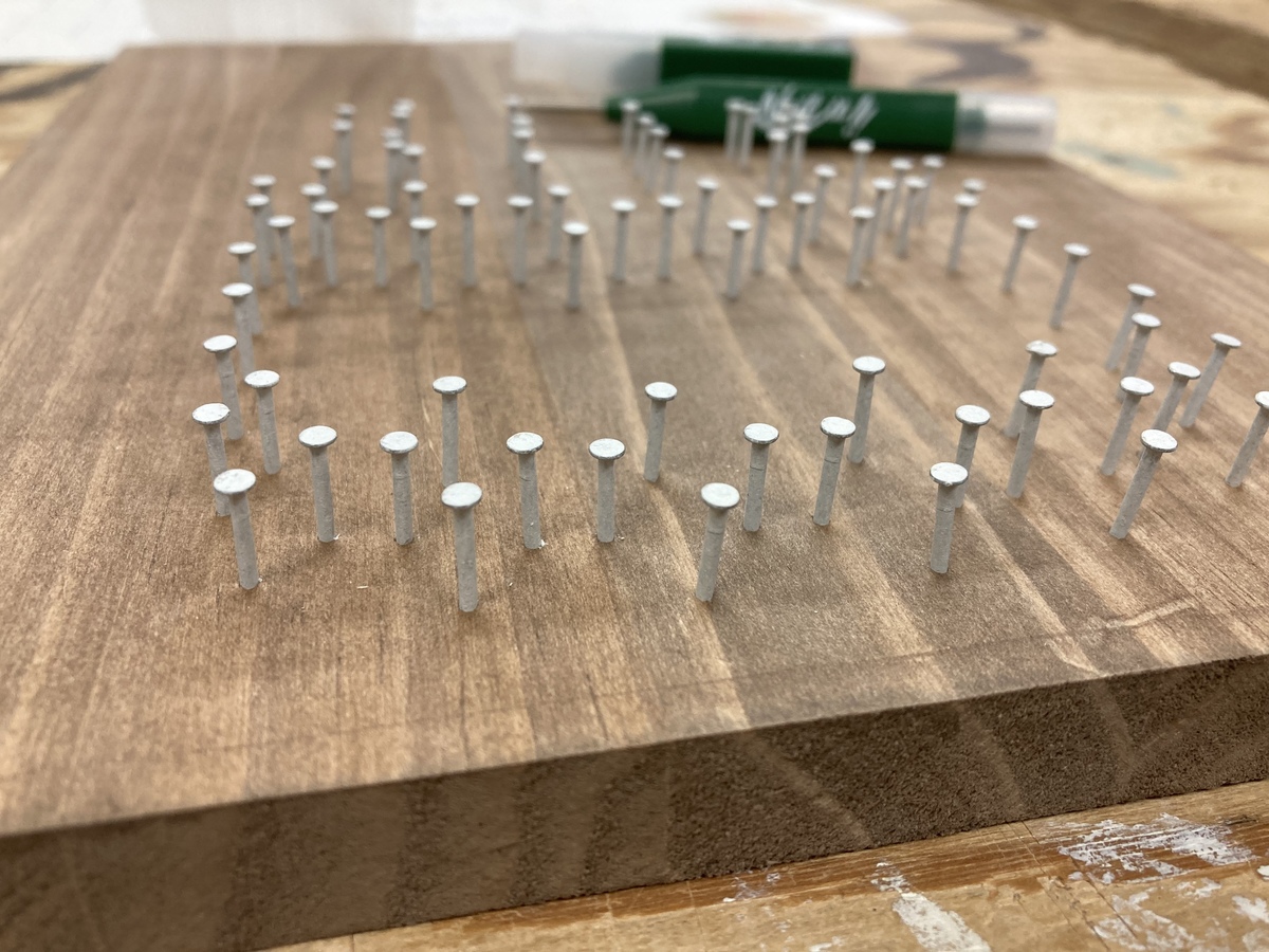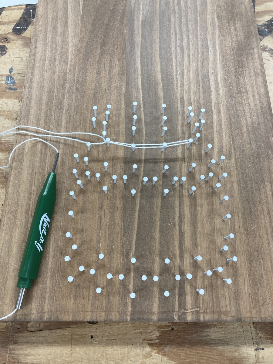 曲がった釘を何とか真っ直ぐに直して糸掛け開始🧵