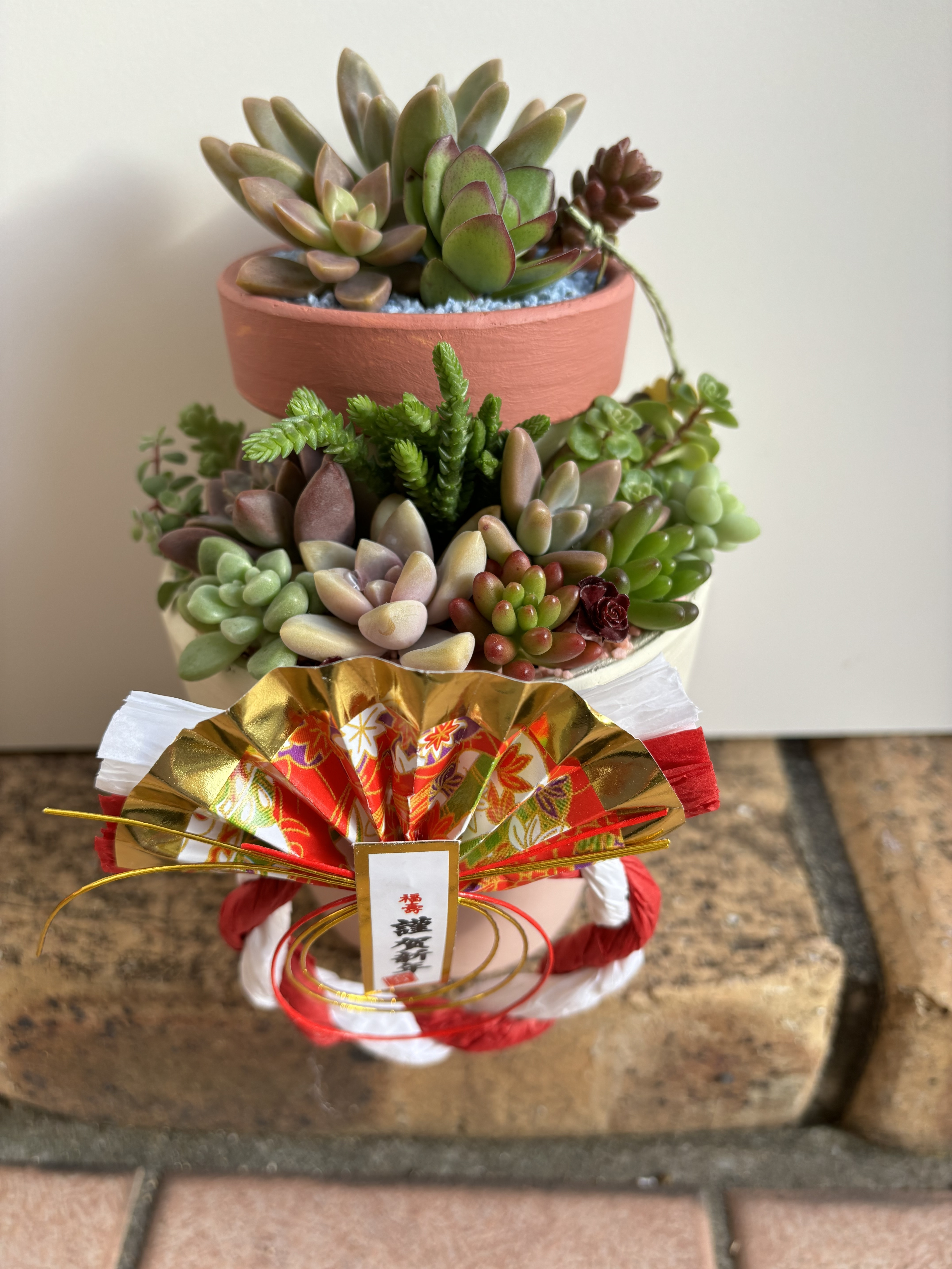 トップ > グリーン > 新年を迎える多肉寄せ 花*花 2023/12/31 00:54 新年を迎える多肉寄せ 今年も多肉愛に満ちた1年でした🥰 たくさん育てていますが 本当に日々の変化を楽しみ 葉っぱから生まれた赤ちゃんを見つけては きゃー可愛い🩷ってなり 夢中になり、それだけで幸せを感じました 😍🌟🥰 迎える新年も 多肉愛が続きますように💖 お正月用の寄せ植えを作りました😊 豪華に2段重ね🌟 紙コップを土台にしてグルーガンでつけて2段に😊 後ろにグルーガンでしっかり接着しました。 土を入れて植え込み いつもより豪華な寄せ植えの完成です😊 皆さま どうぞ良い年をお迎え下さい💓🥰 いいね 共有する 共有する X LINE リンクをコピー コメントする 1 件の返信 (新着順) ミュートしたユーザーの投稿です。 投稿を表示 あにー 2023/12/31 07:01 ステキなアイデア提供してくださり、ありがとうございます😊 いいね 返信する ミュートしたユーザーの投稿です。 投稿を表示 花*花 2023/12/31 10:22 あにー あにーさん 見て下さりありがとうございます🥰 いいね 返信する
