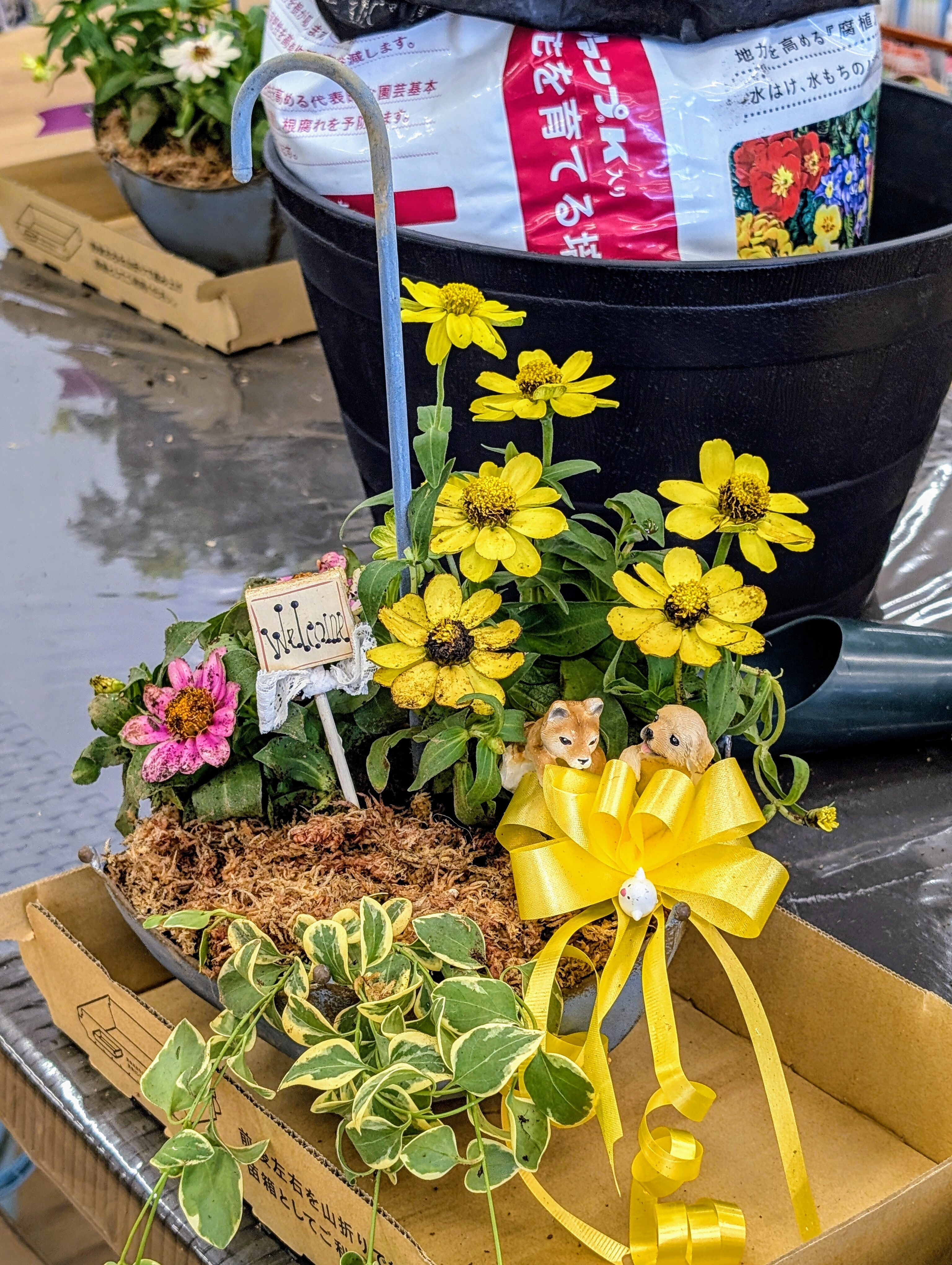 投稿を表示持ち込み小物でさらに可愛いアンブラの寄せ植えになりましたね〜🤗💕