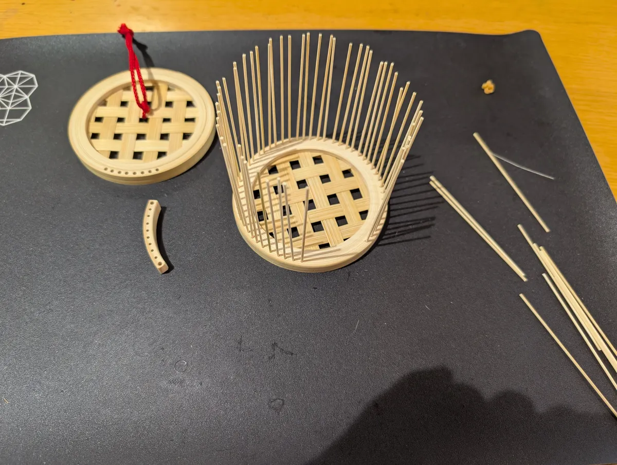 で、予約しておいた竹の細工から。