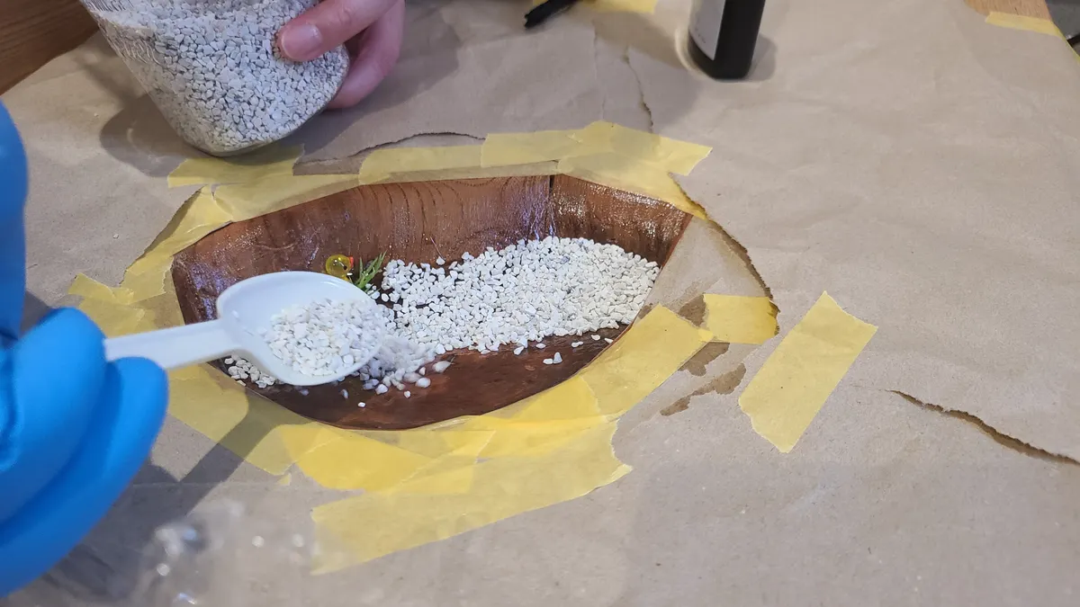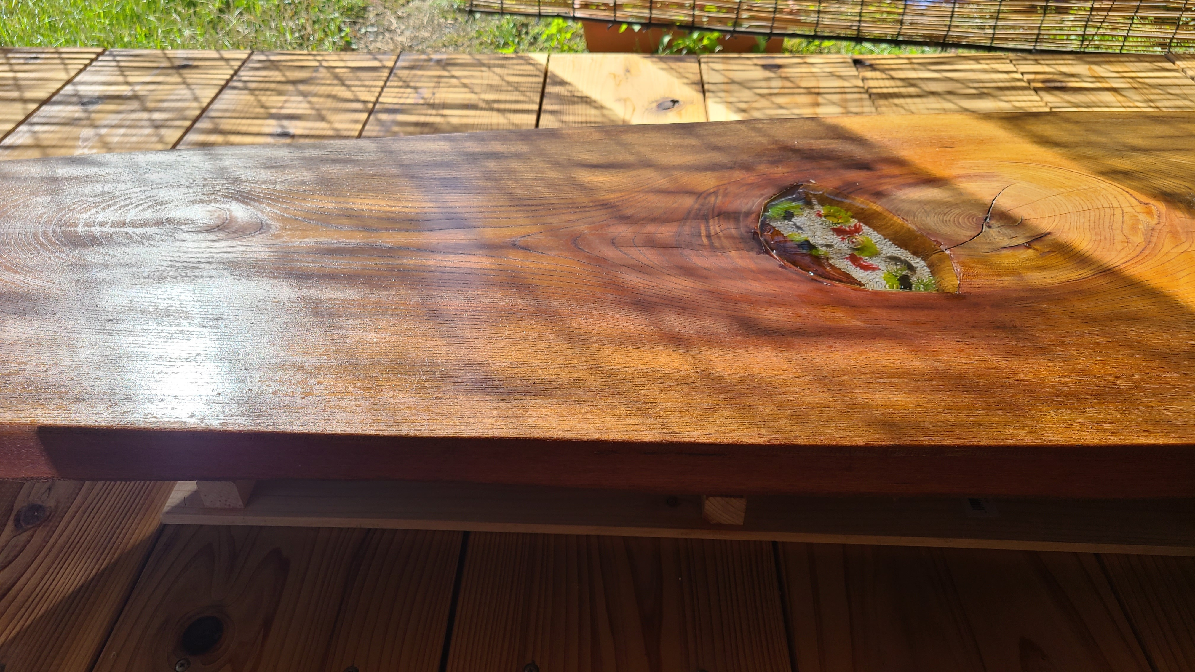 トップ > DIYアワード2025 > キャンペーン > 縁台のレジンアートに初挑戦! ふくまるさんち 2025/10/06 20:25 縁台のレジンアートに初挑戦! 縁側から庭に出るための縁台の一部が反ってしまい、足の裏を傷つける恐れがあったため、補修に初挑戦してみることにしました! まずは反ってしまった部分を思い切って取り除き、表面全体を丁寧に研磨しました。 しっかりと養生を行い、取り除いた部分に仕掛けを施しつつ、レジンを流し込みます。 あ…気のせいです… 雨にさらされることを考え、防腐処理もきちんと施しました。 養生を剥がして完成!くぼみに溜まった雨水には金魚が住み着き、まるで小さな金魚の楽園のようなレジンアートになりました。 木工DIY部門【DIYアワード2025】 リフォーム・エクステリア部門【DIYアワード2025】 手芸・小物雑貨部門【DIYアワード2025】 いいね 共有する 共有する X LINE リンクをコピー コメントする 0 件の返信 (新着順)