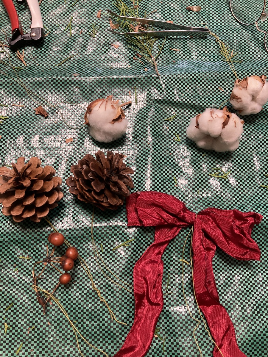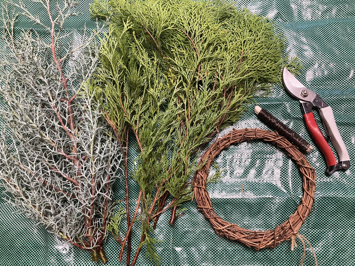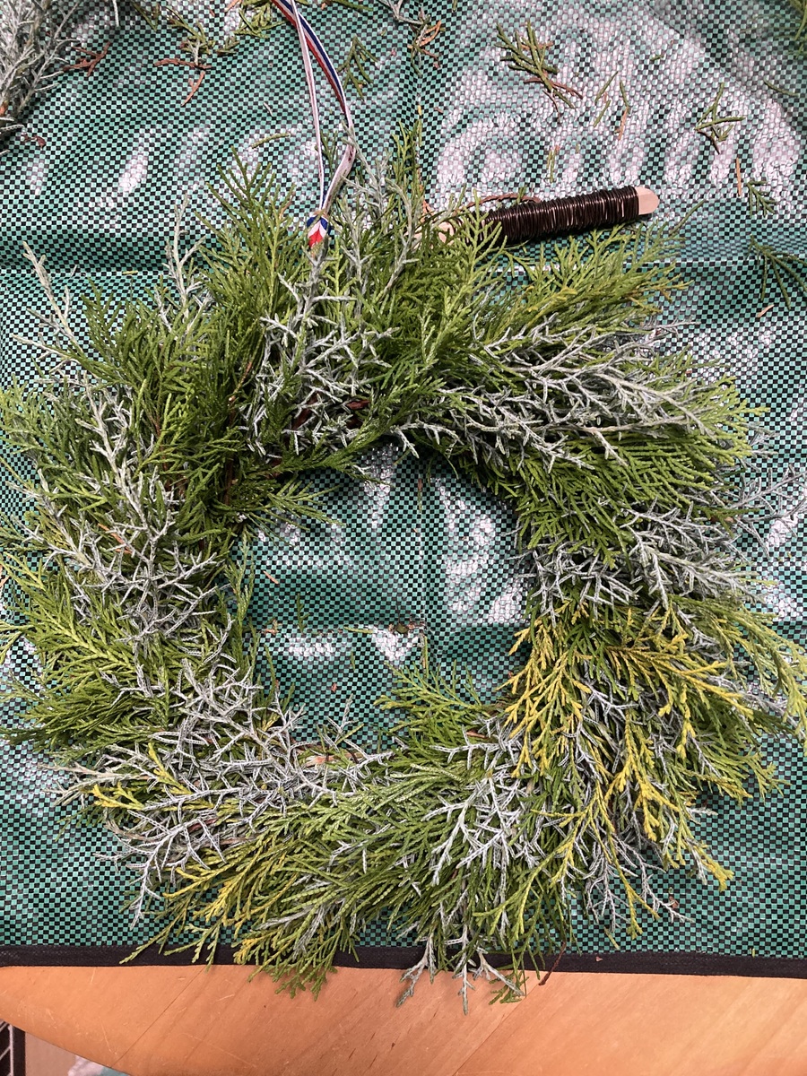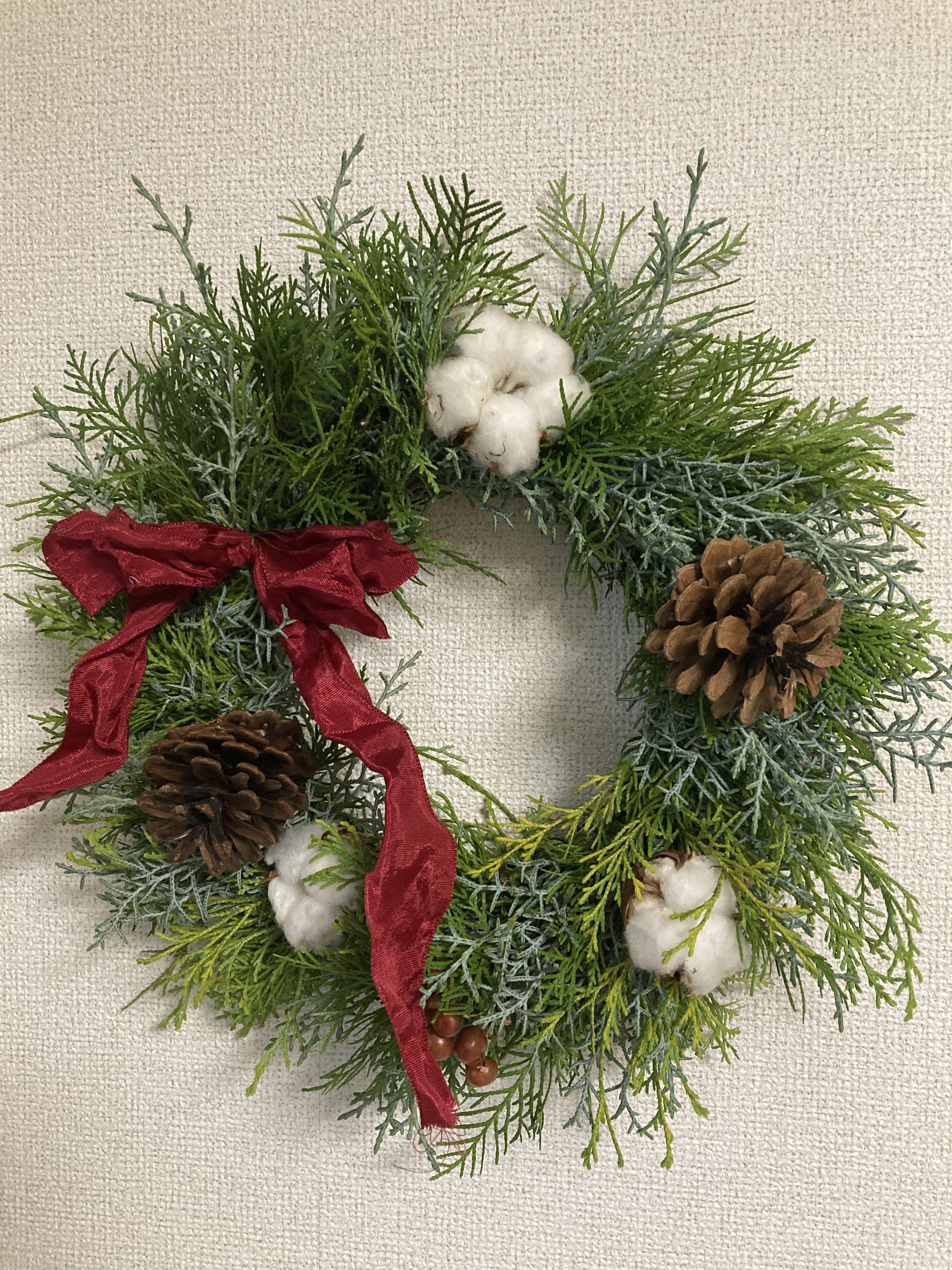 昨日頂いたコニファーでクリスマスリース🎄作りました🎄.*