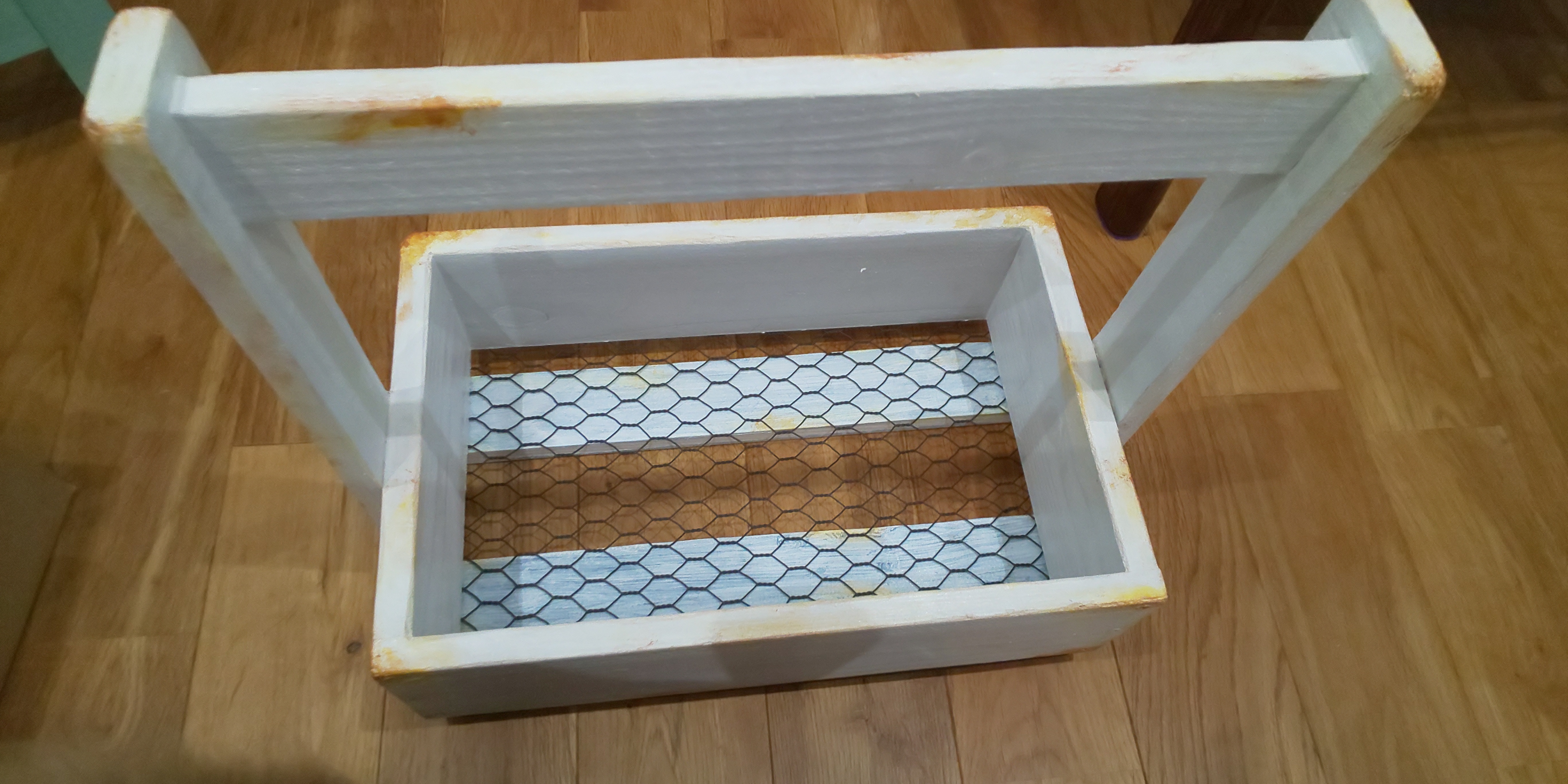 うちのガーデントレイはドリルで何ヶ所か穴を開けて、多肉植物を入れてますが、トレイに入れたまま多肉に水をやっているので、底板がいずれは腐ってくるかなぁ💦と思っています。