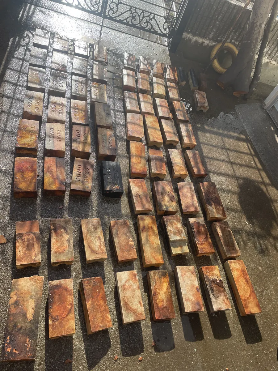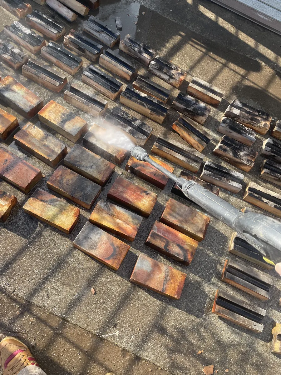 表面が終わったら全て裏返しにして反対側も綺麗にして行きましょーピザ釜として使ってたのかな?反対側はオコゲが付いてますね。