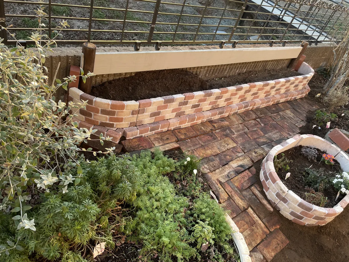 レンガはアンティークレンガの様な雰囲気ですね。なるべく無駄の無い様に使わなきゃ💦