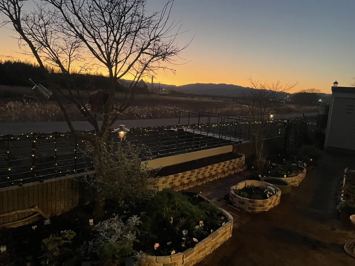 土入れも完了したし、あとは土が落ち着いてから苗を植えてもらいましょ〜夕日が今日も綺麗ですぅ🤩