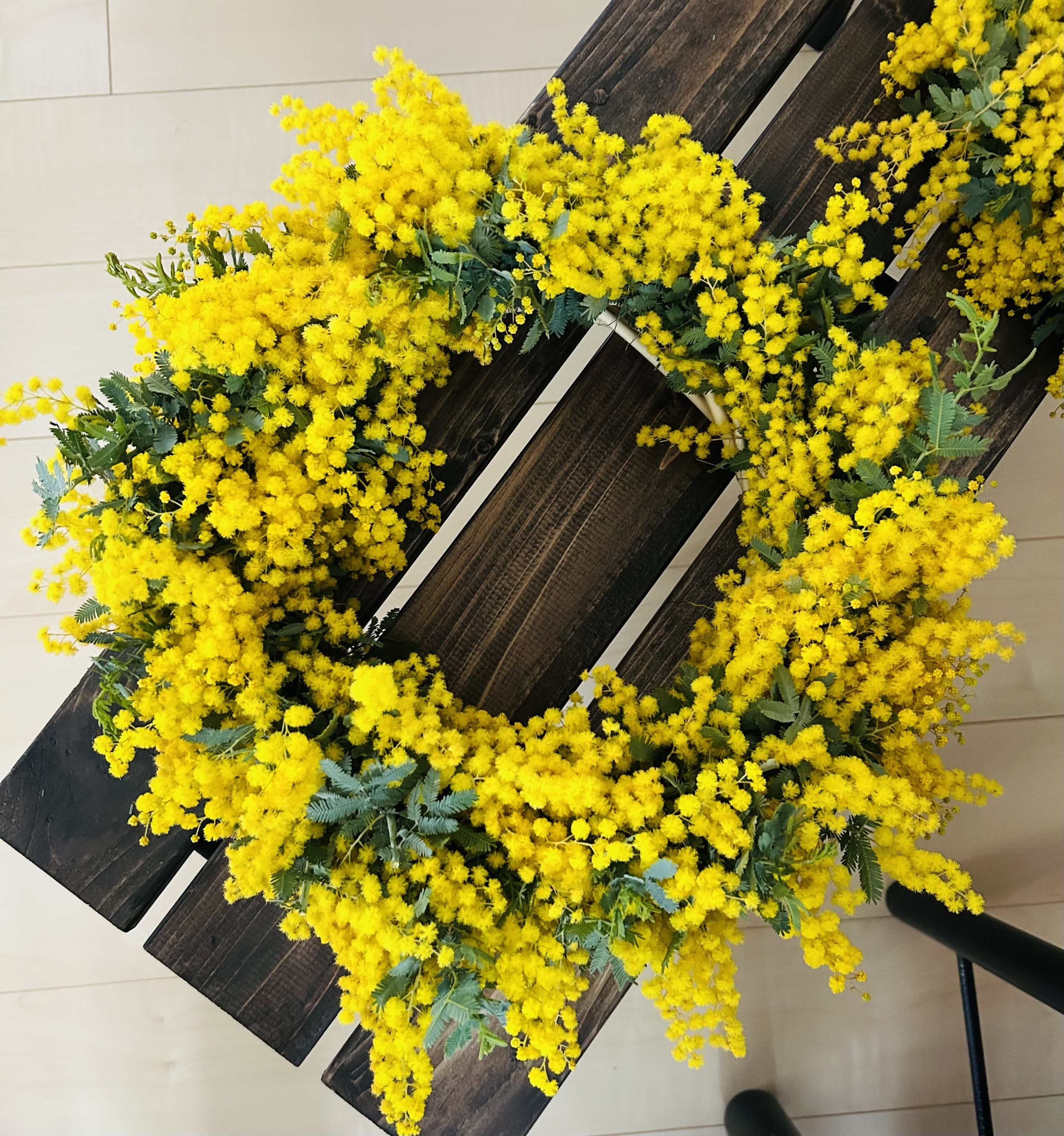 投稿を表示真ん丸満開のミモザのリース♡ ̖́-
