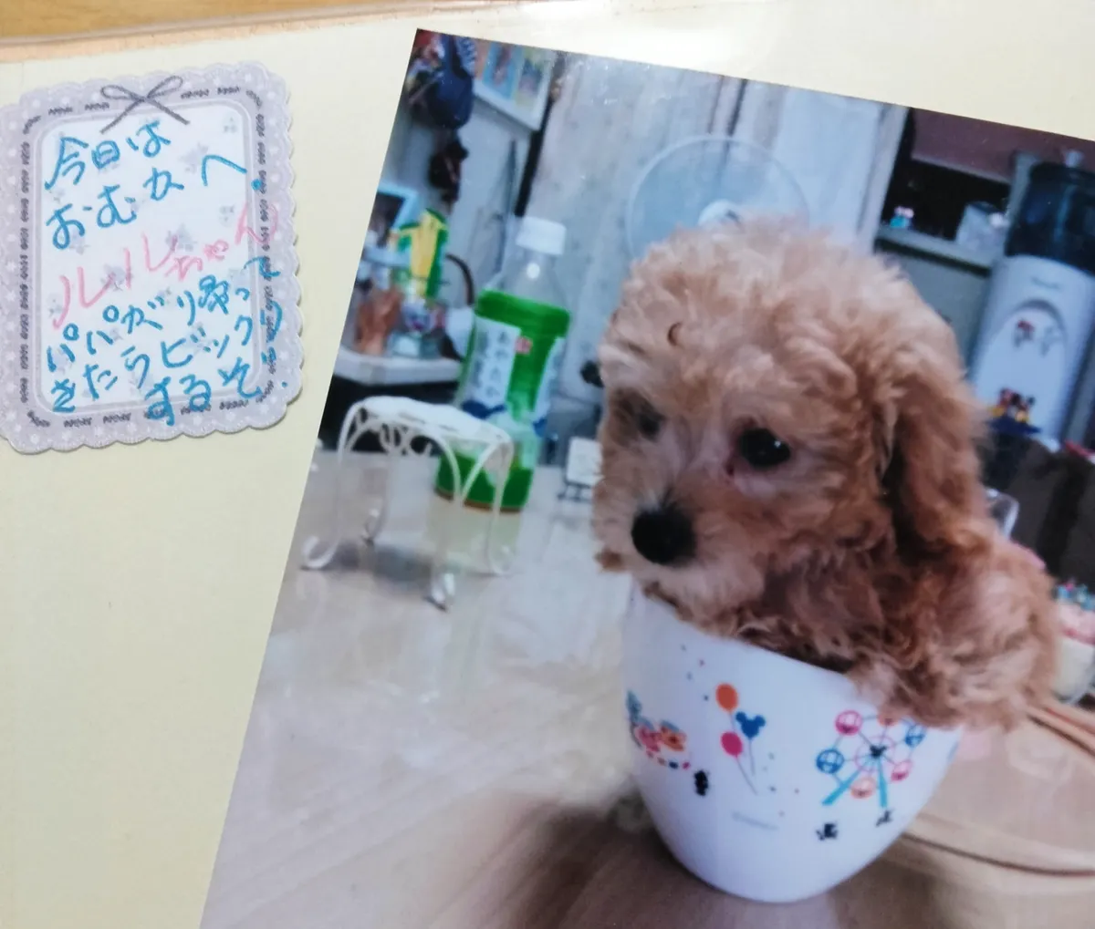 投稿を表示カップに入ってて可愛い〜、そして今も変わらぬ可愛さです🥰パパさんのエピソード(笑)ルルちゃんがおとなしかったんですね、騒いでたらわかりますもんね😆