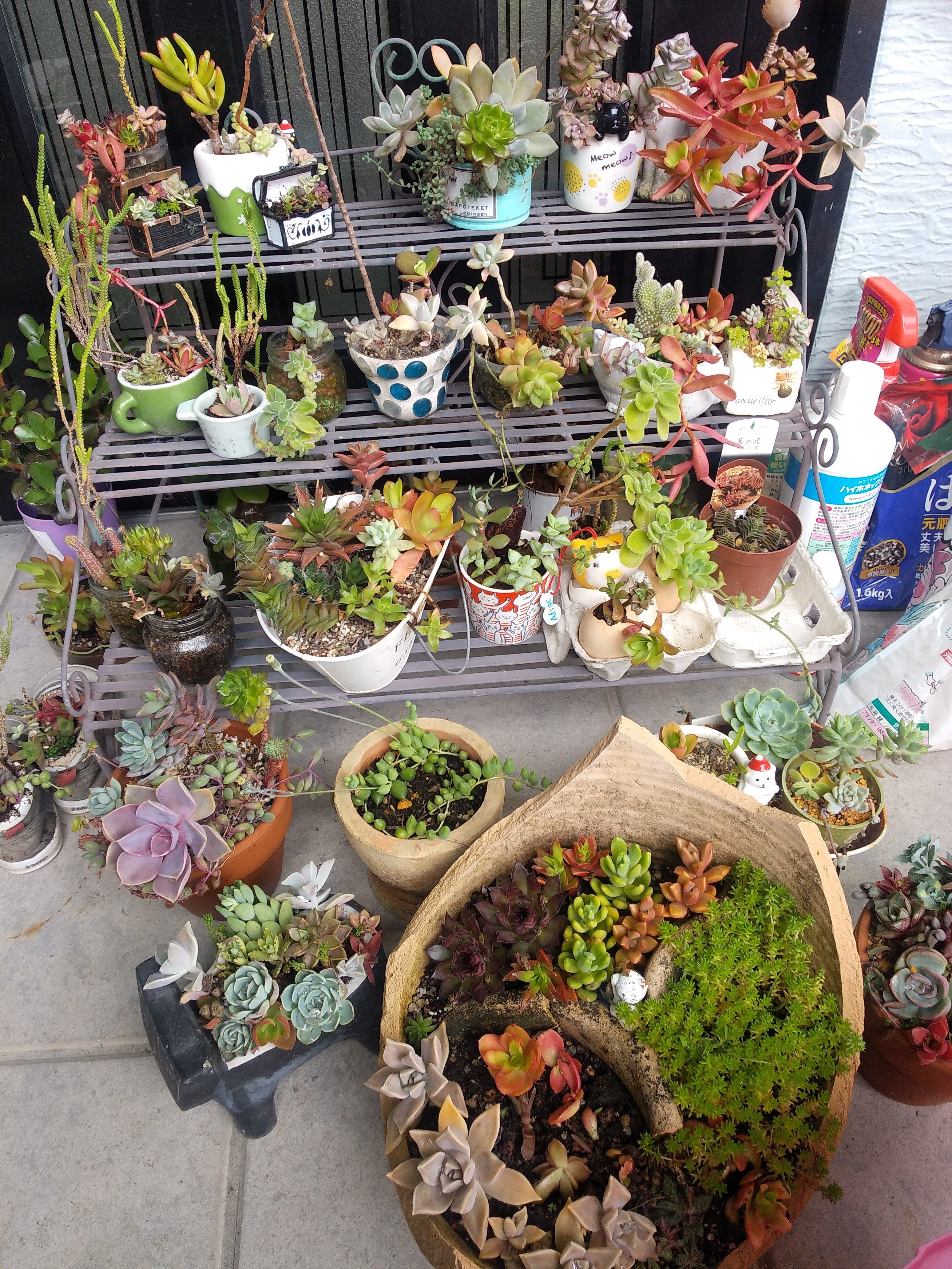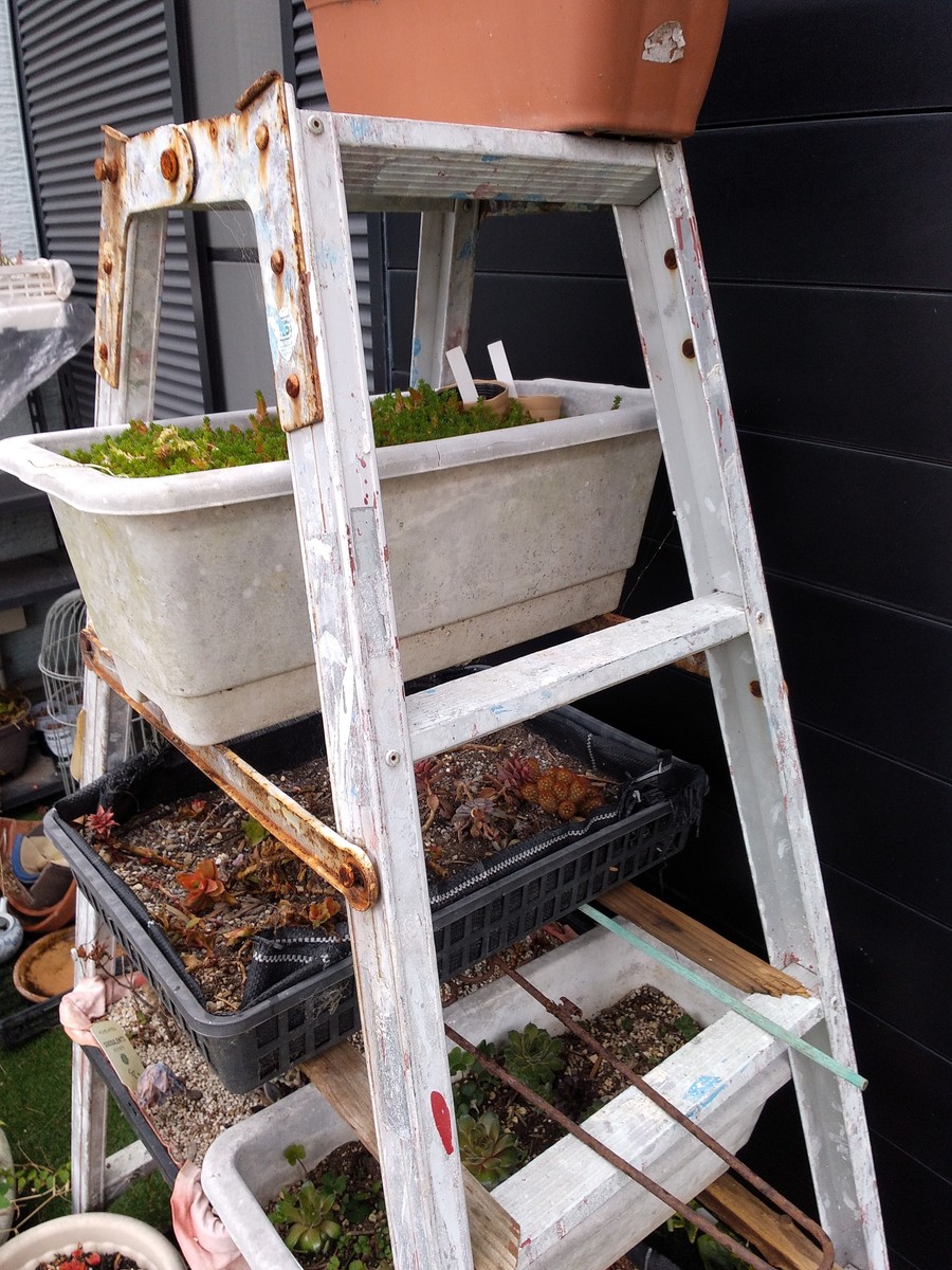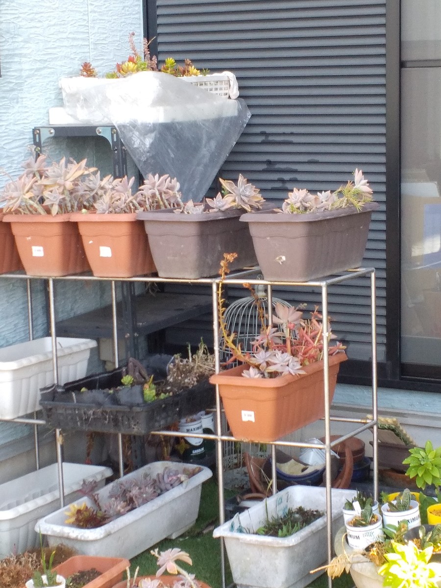 寄せ直す元気(自分の元気ね)がないので、歯抜けになったところに多肉穴埋めで済ましています😆養生中やストックはバックヤード2カ所に、