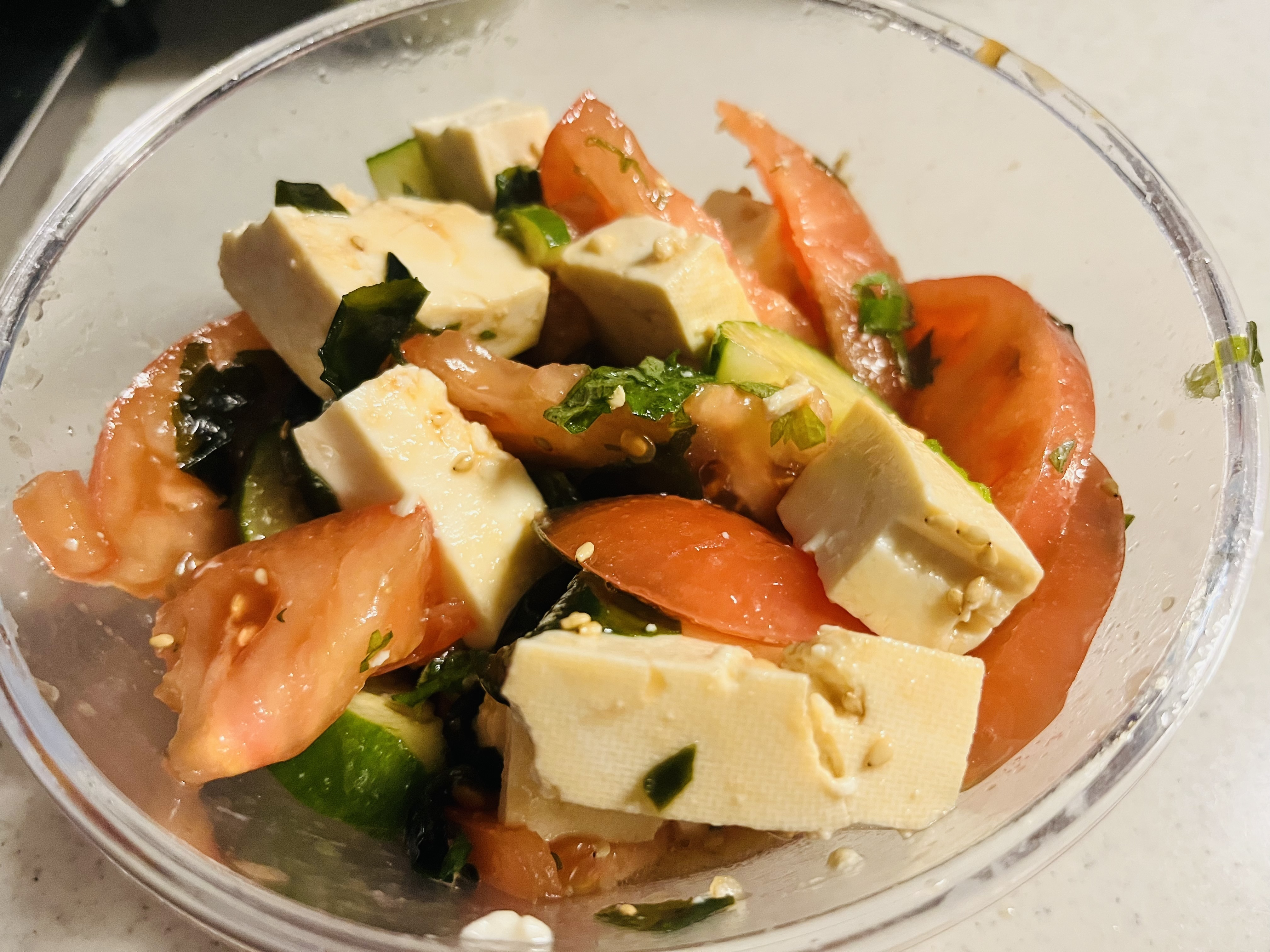 投稿を表示私も美肌の言葉に誘われちゃいました。身体に良さそうな爽やかさサラダ。メチャ高だった🍅が漸く98円で並ぶ様になりました。