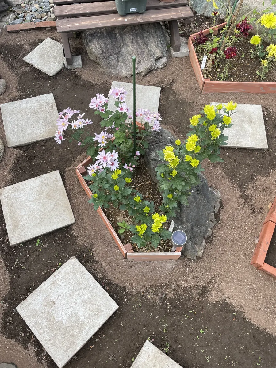 11/11作品投稿「小菊の小花壇2個の周りを人工砂で囲む」