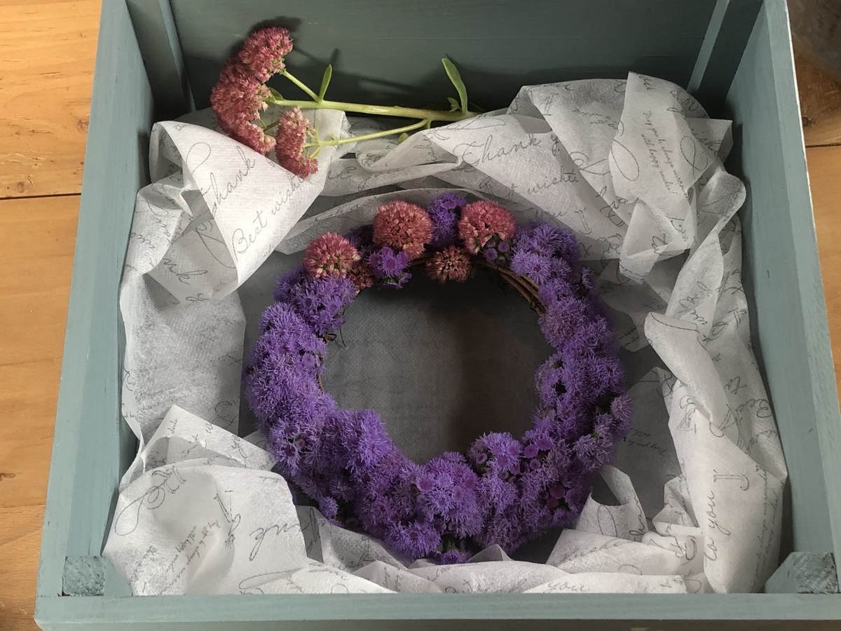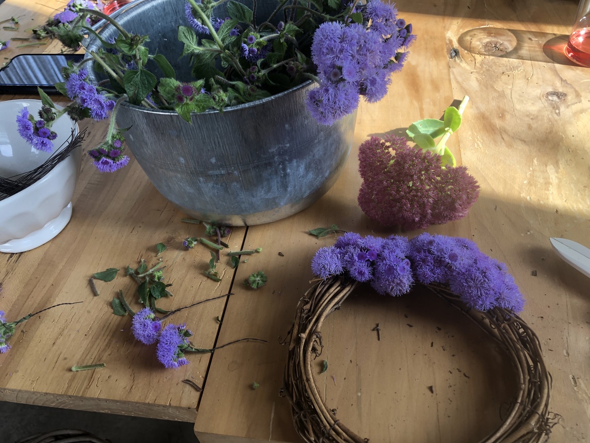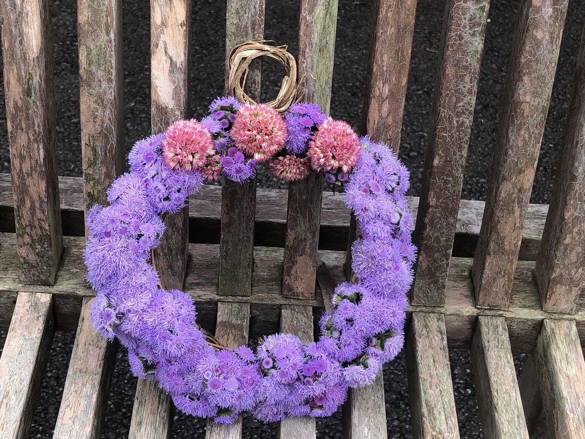 中之条ガーデンズでアゲラタムのリース作りWSに参加してきました。