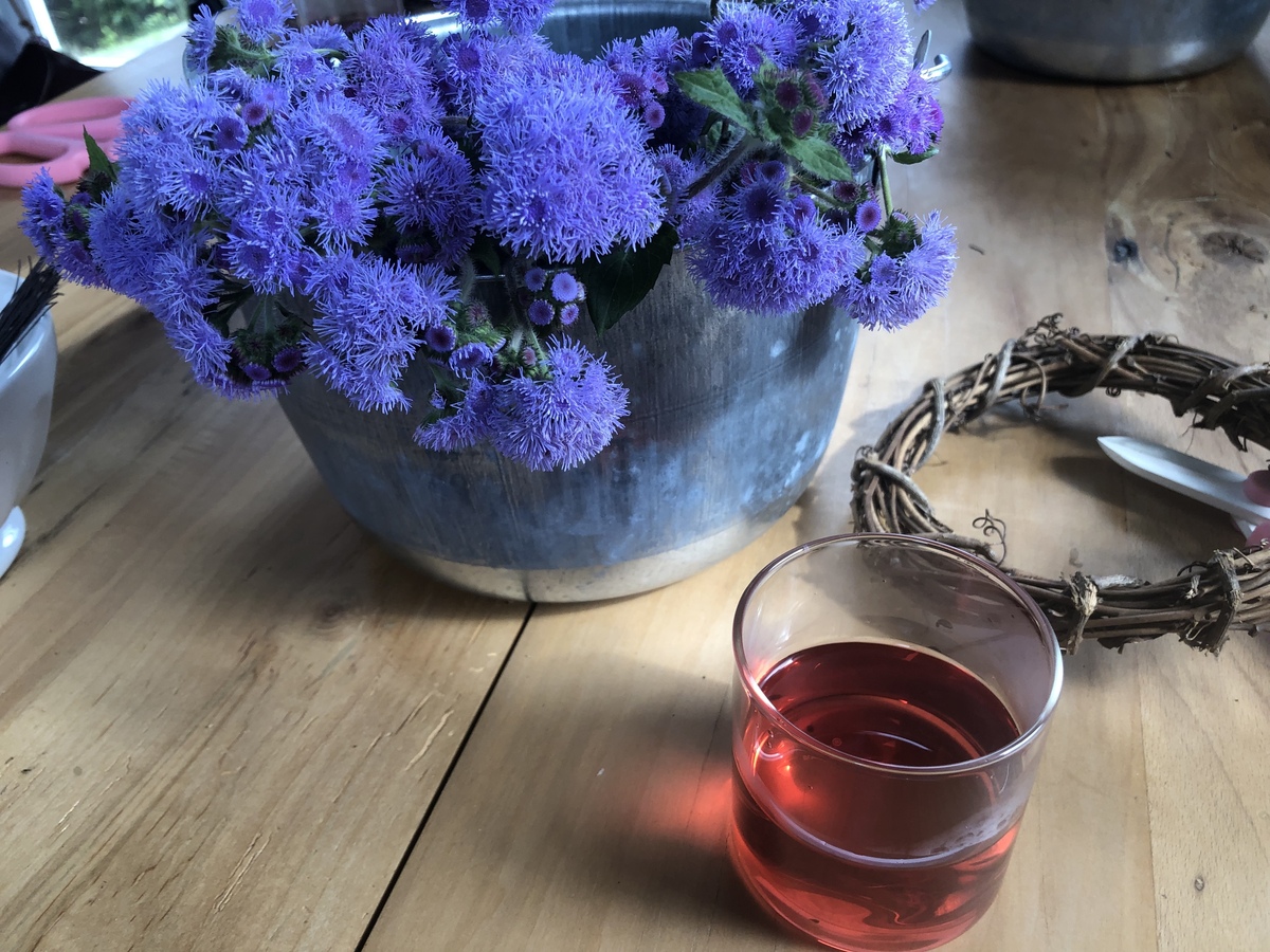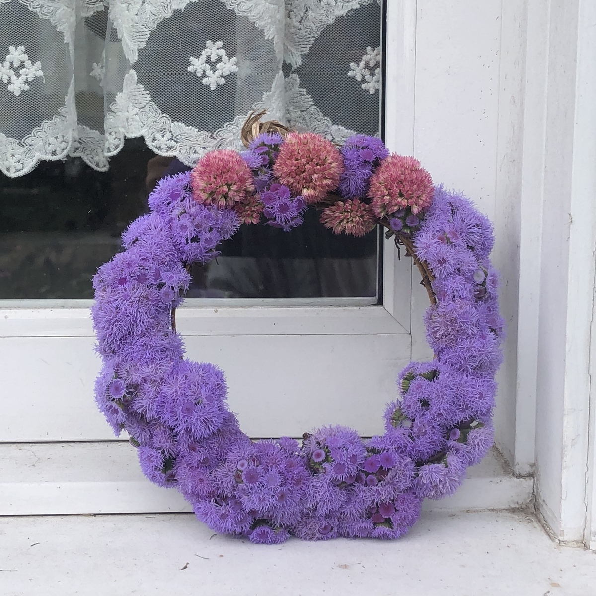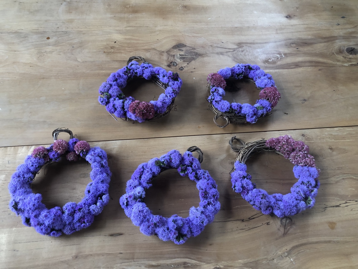 中之条ガーデンズでアゲラタムのリース作りWSに参加してきました。