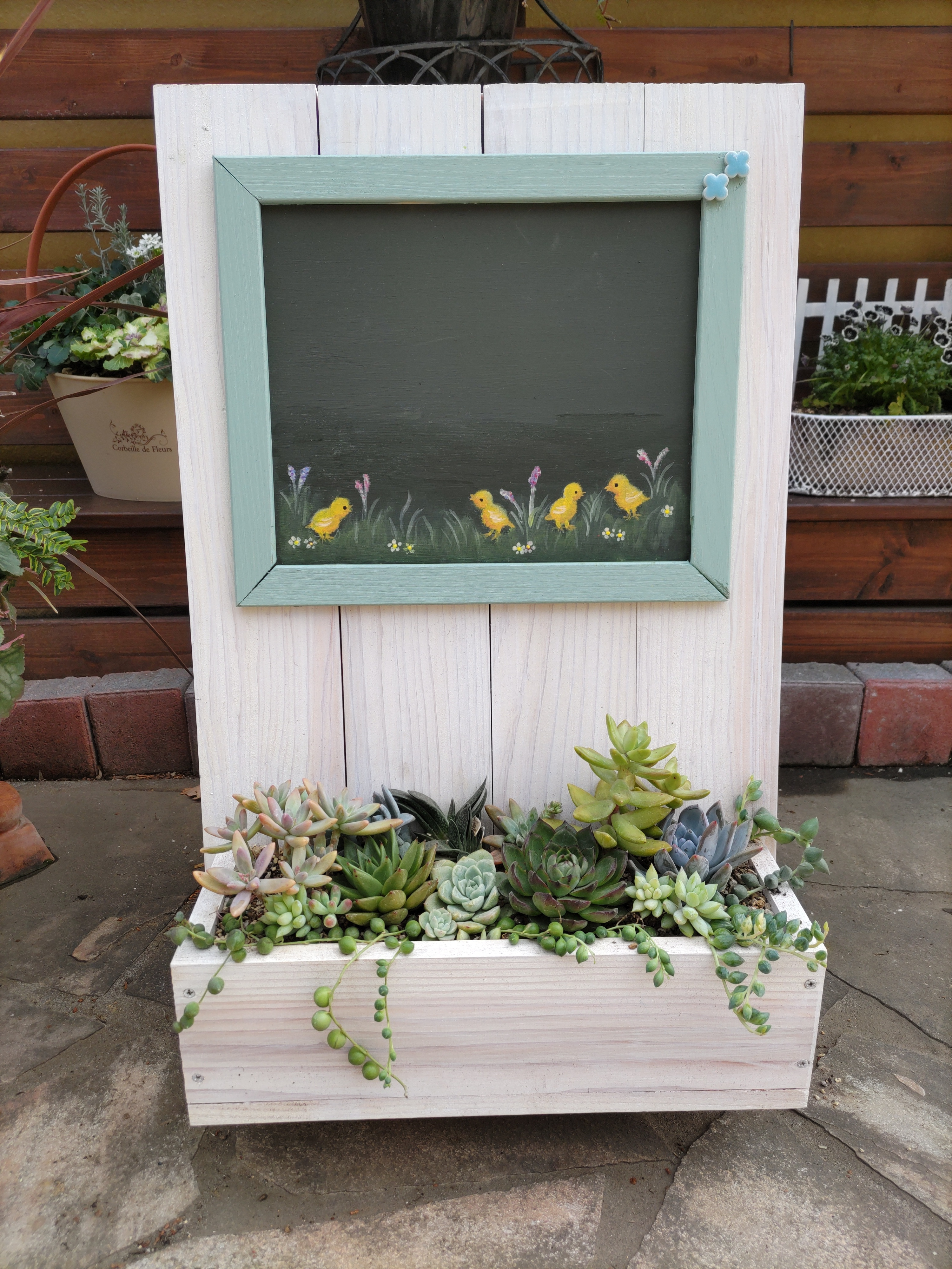 投稿を表示多肉ちゃんも素敵だけど、黒板の🐤ちゃんが、とっても可愛いです💕