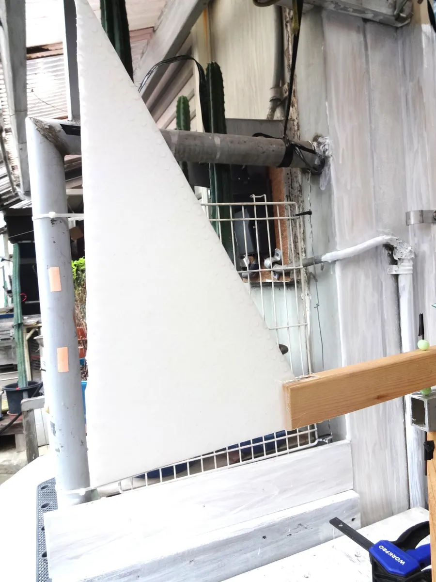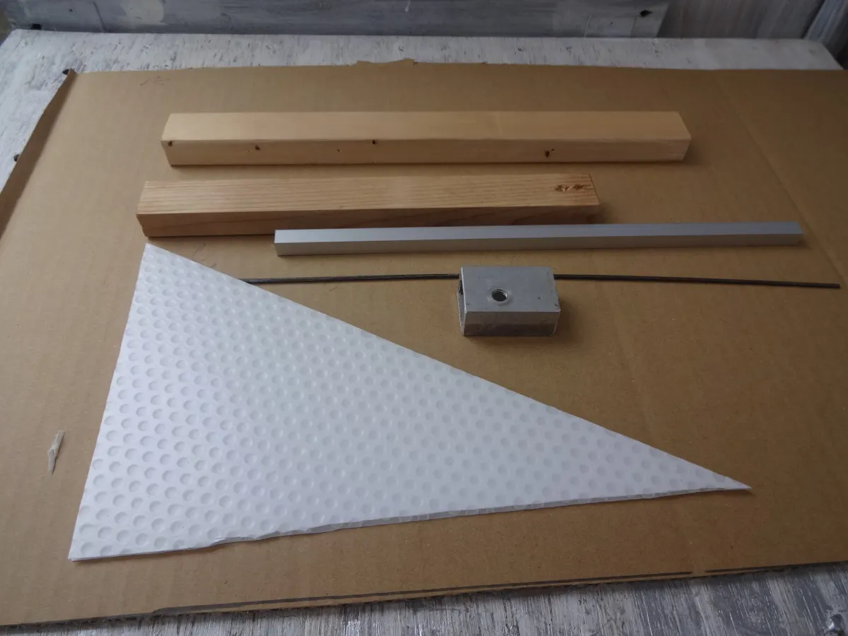 1×4材を3cm巾で 長さ30cm程。と支柱25cm程→適当で。