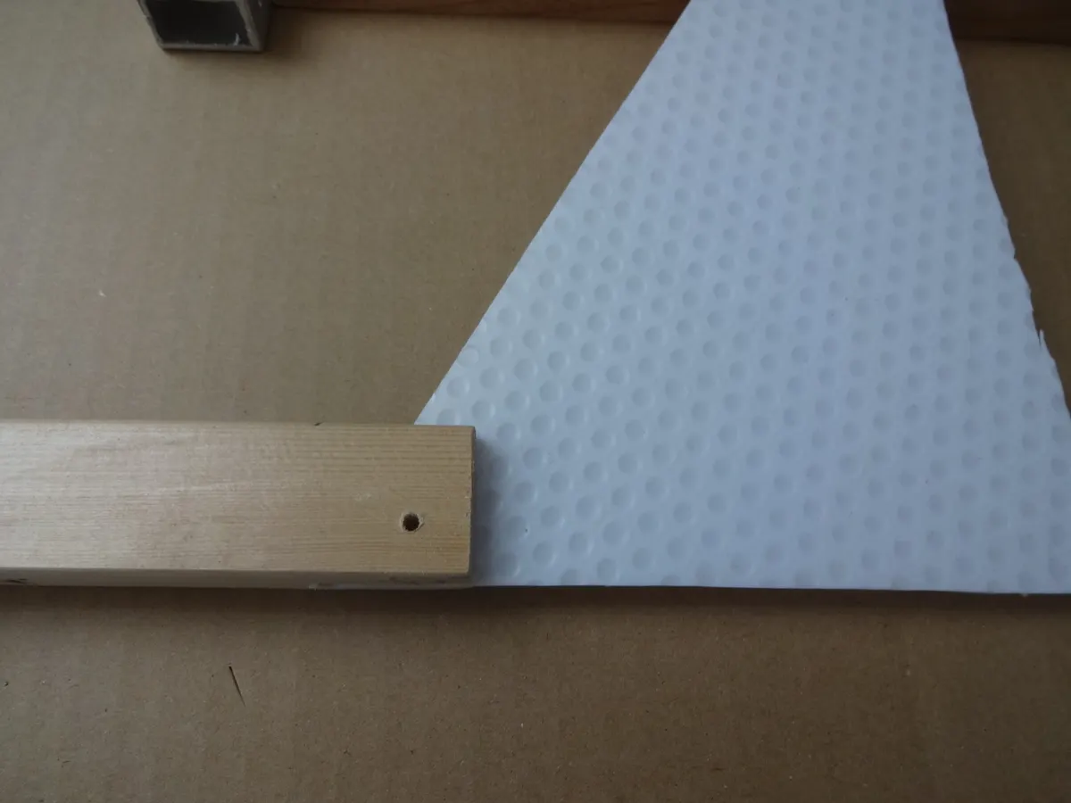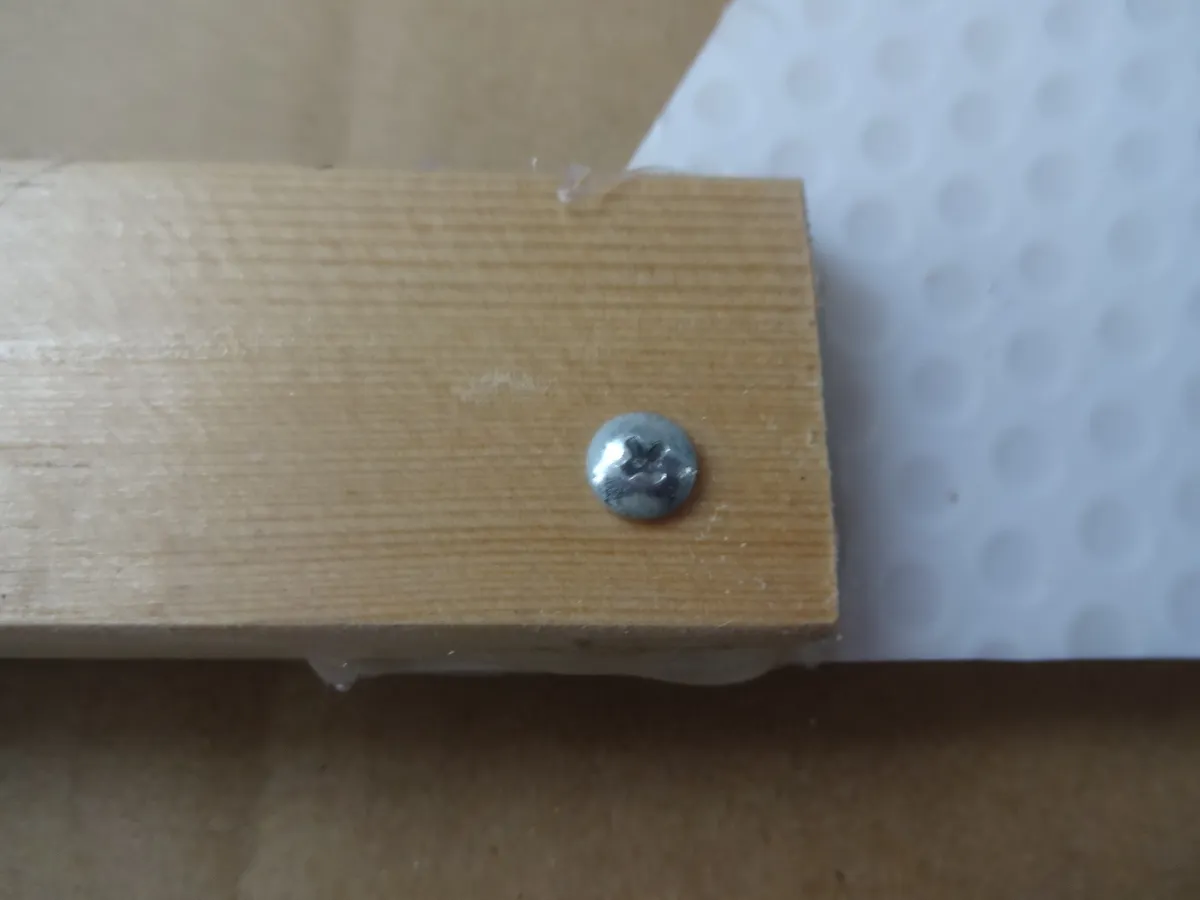 ↓ 溝にプラダンを差し込み 図の位置にビス穴を空け(片側だけ)1#鍋ビスで固定